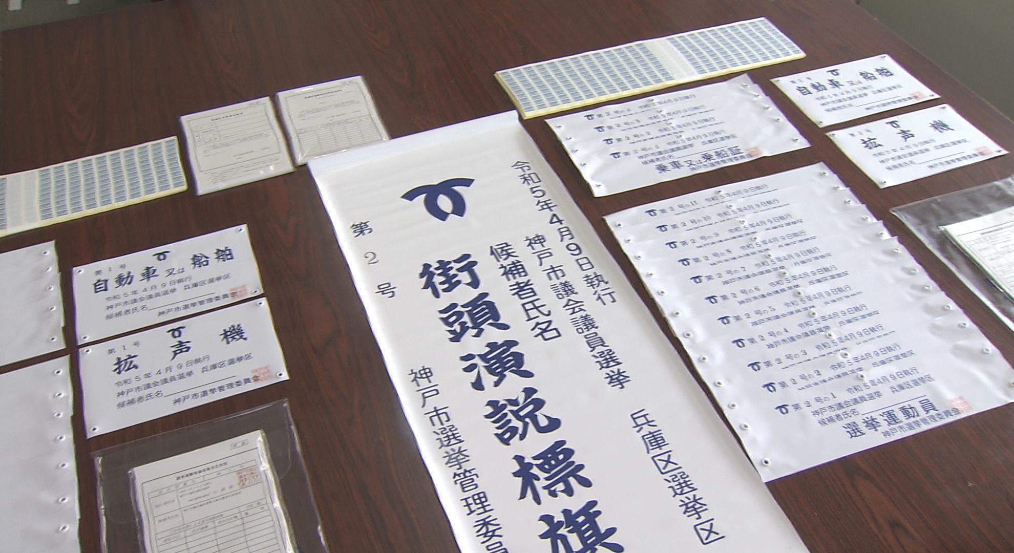 統一地方選の前半戦として今月末に告示される神戸市議選を前に市の選挙管理委員会は8日、立候補者に配るいわゆる「選挙の7つ道具」の点検を行いました。