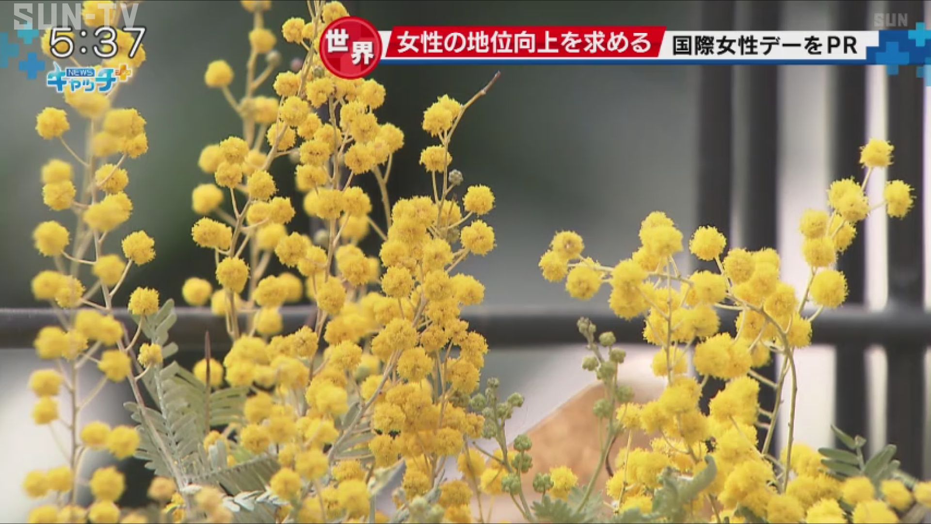 華やかに咲き誇る黄色い花。 国連によって制定されている「国際女性デー」は、黄色いミモザの花がシンボルとして親しまれ、女性の社会参加や地位の向上、そして男女差別をなくすことが世界で求められています。