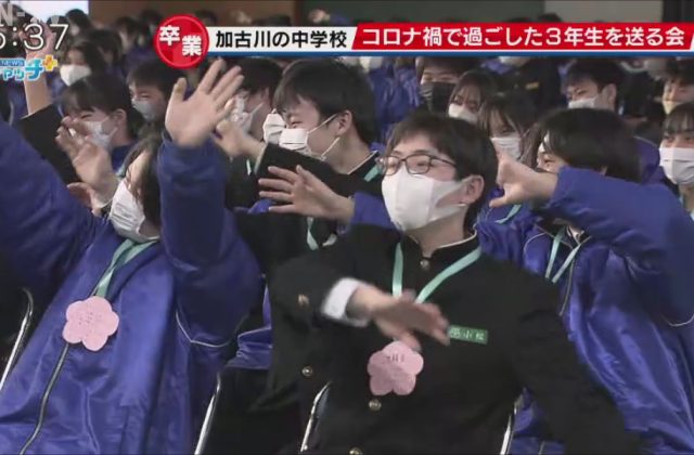 加古川市の中学校で、新型コロナの影響で制限のある学校生活を送ってきた3年生に、後輩たちから「ありがとう」を伝えようと送る会が開かれました。