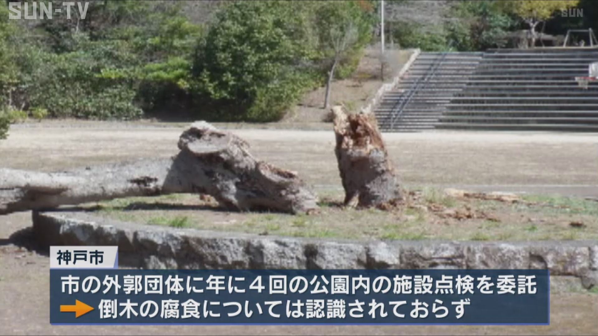 神戸市は市の外郭団体に年に4回の公園内の施設点検を委託していて、倒れた木の腐食については認識されていなかったということです。