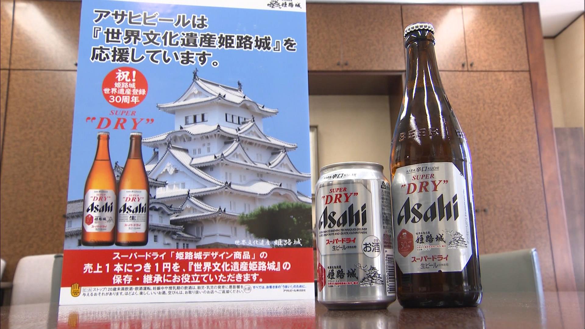 アサヒビールは、2017年から毎年、姫路城をラベルにデザインした瓶ビールや缶ビールを販売していて、売り上げ1本につき1円を姫路城の保存・継承に役立ててもらおうと、寄付しています。