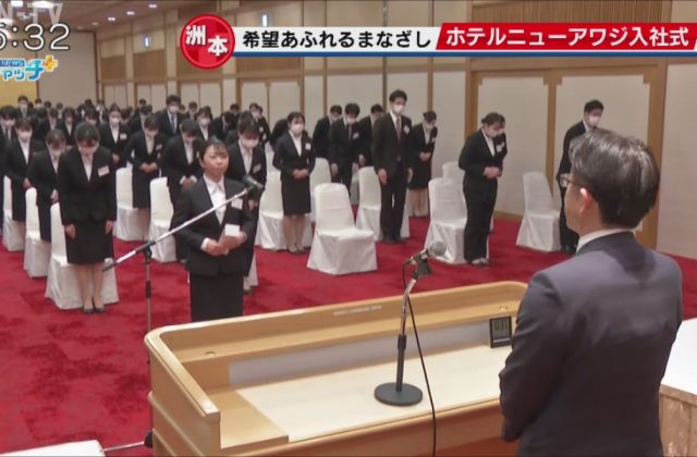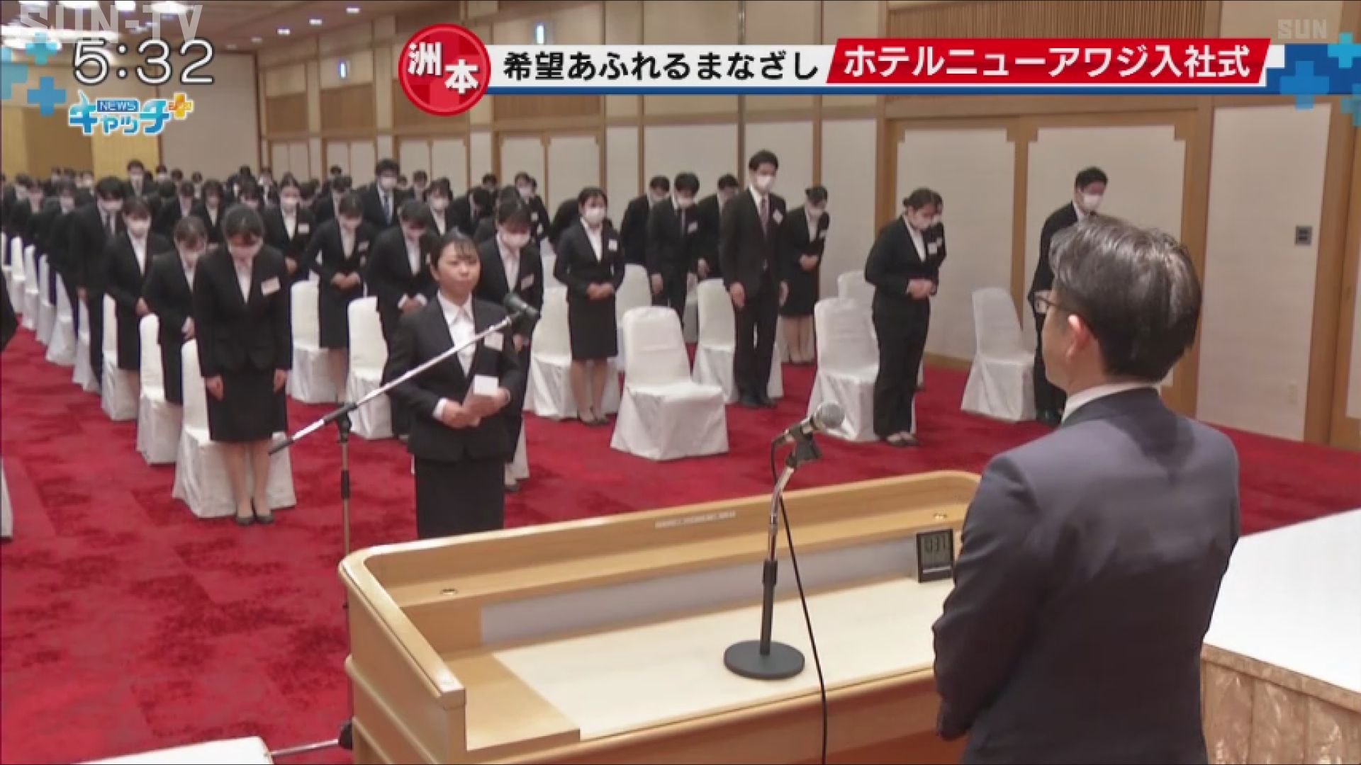 ホテルニューアワジグループは、「新入社員には若い力でお客さまの笑顔を引き出してほしい新しい戦力に期待する」としています。