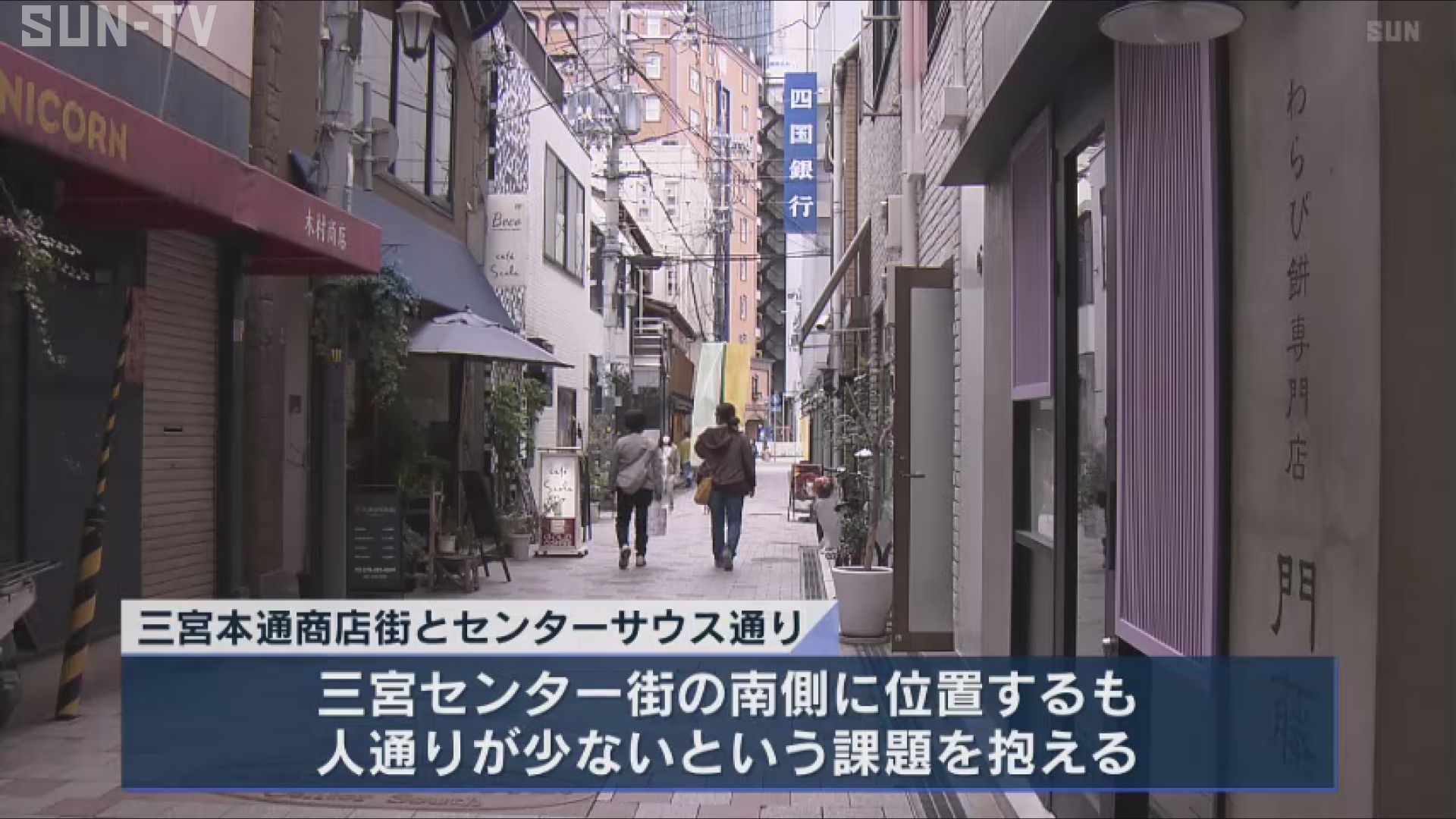 兵庫県神戸市中央区の三宮本通商店街とセンターサウス通は三宮センター街の南側に位置していますが、センター街と比べて人通りが少ないという課題を抱えています。