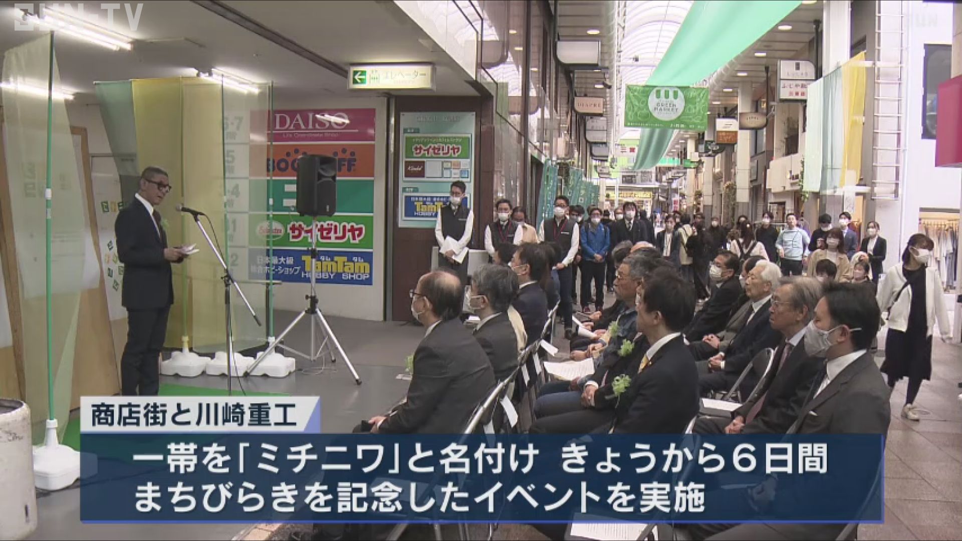 センター街の南エリアを活性化させようと商店街と川崎重工が協力してエリア一帯を「ミチニワ」と名付け、21日から6日間、まちびらきを記念したイベントを実施しています。