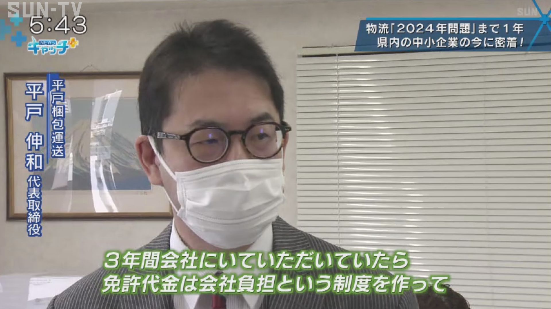 「高校生とかは免許を持っていない方もいらっしゃるので、3年間会社にいていただいていたら免許代金は会社負担という制度を作って、新しいドライバーをどんどん取りたいなと思っていまして」