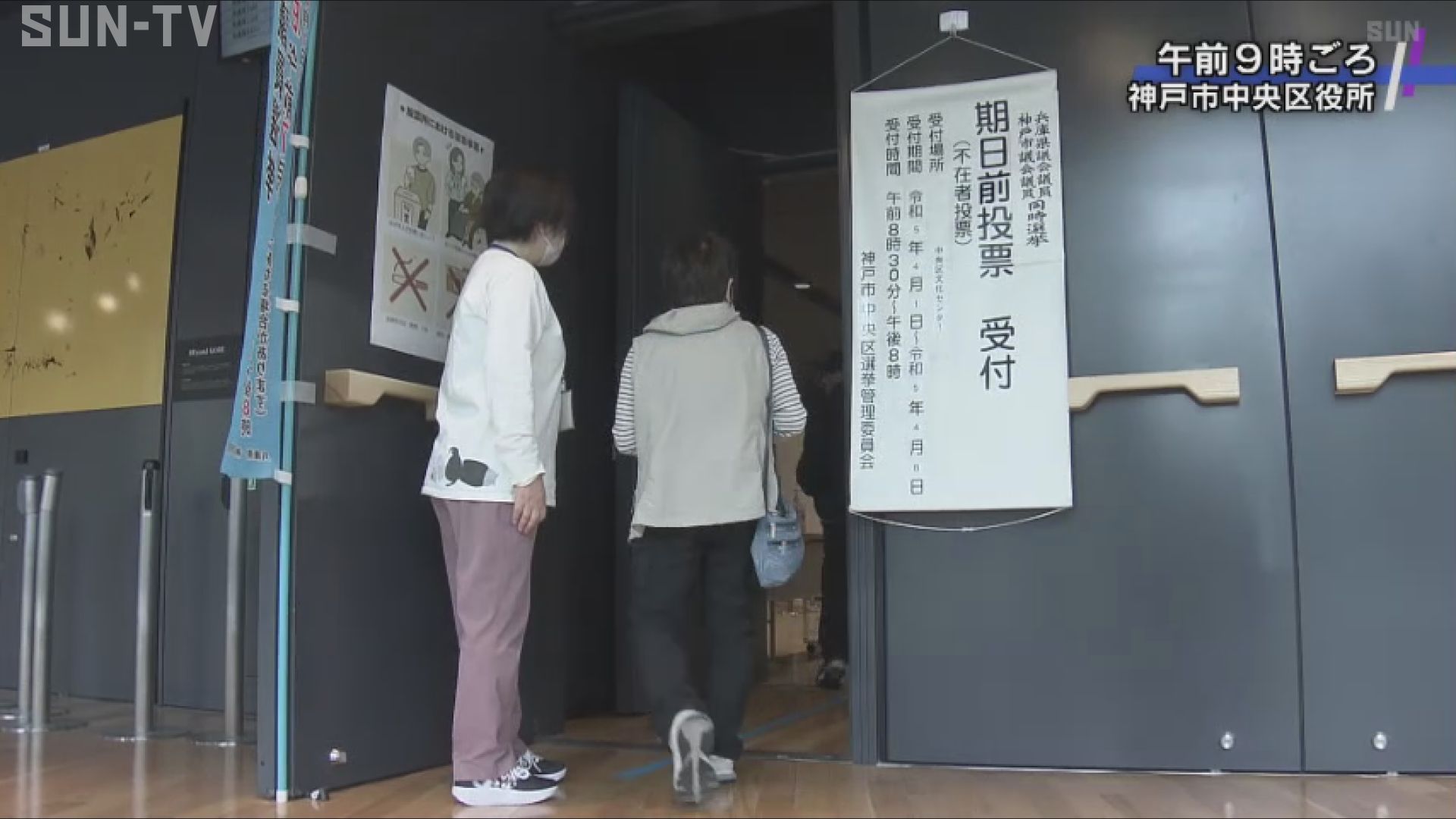 このうち神戸市の中央区役所の期日前投票所では、有権者が県議選と市議選の候補者にそれぞれ1票を投じていました。