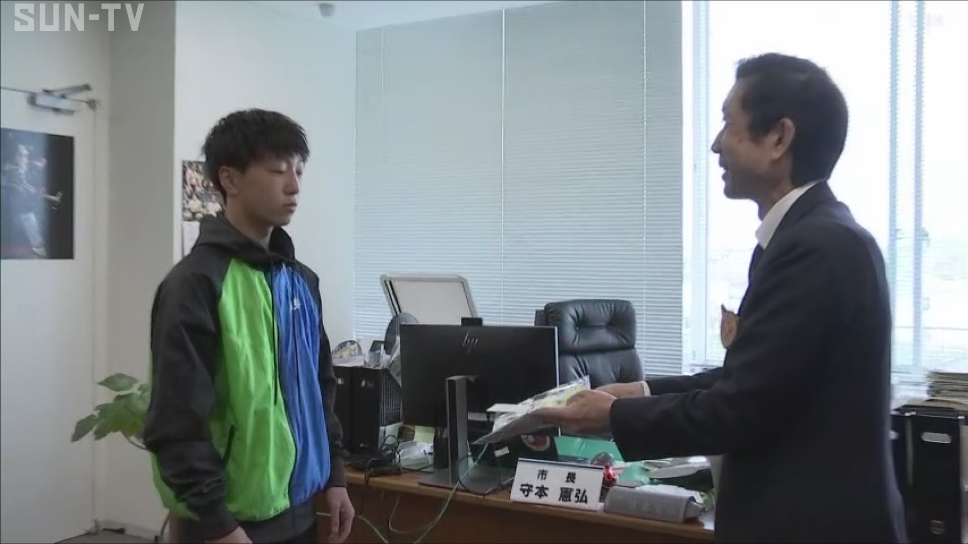 池田さんから優勝報告を受けた守本市長は、「まだまだこれから伸びていかれると思うので、輝かしい将来を目指して頑張ってください」と激励しました。