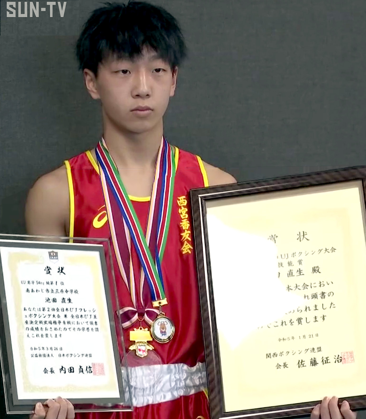 神戸・舞子のボクシングジムに所属する池田さんは、ことし3月に鹿児島県で開催された、中学生の全日本UJフレッシュボクシング大会の54㌔級に出場。