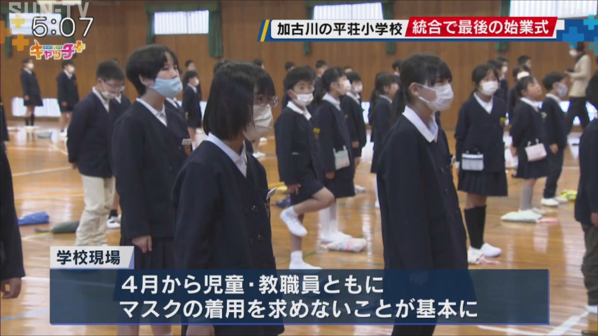 学校現場では4月から児童・教職員ともにマスクの着用を求めないことが基本となりましたが、多くの児童がマスクを着けて始業式に臨みました。