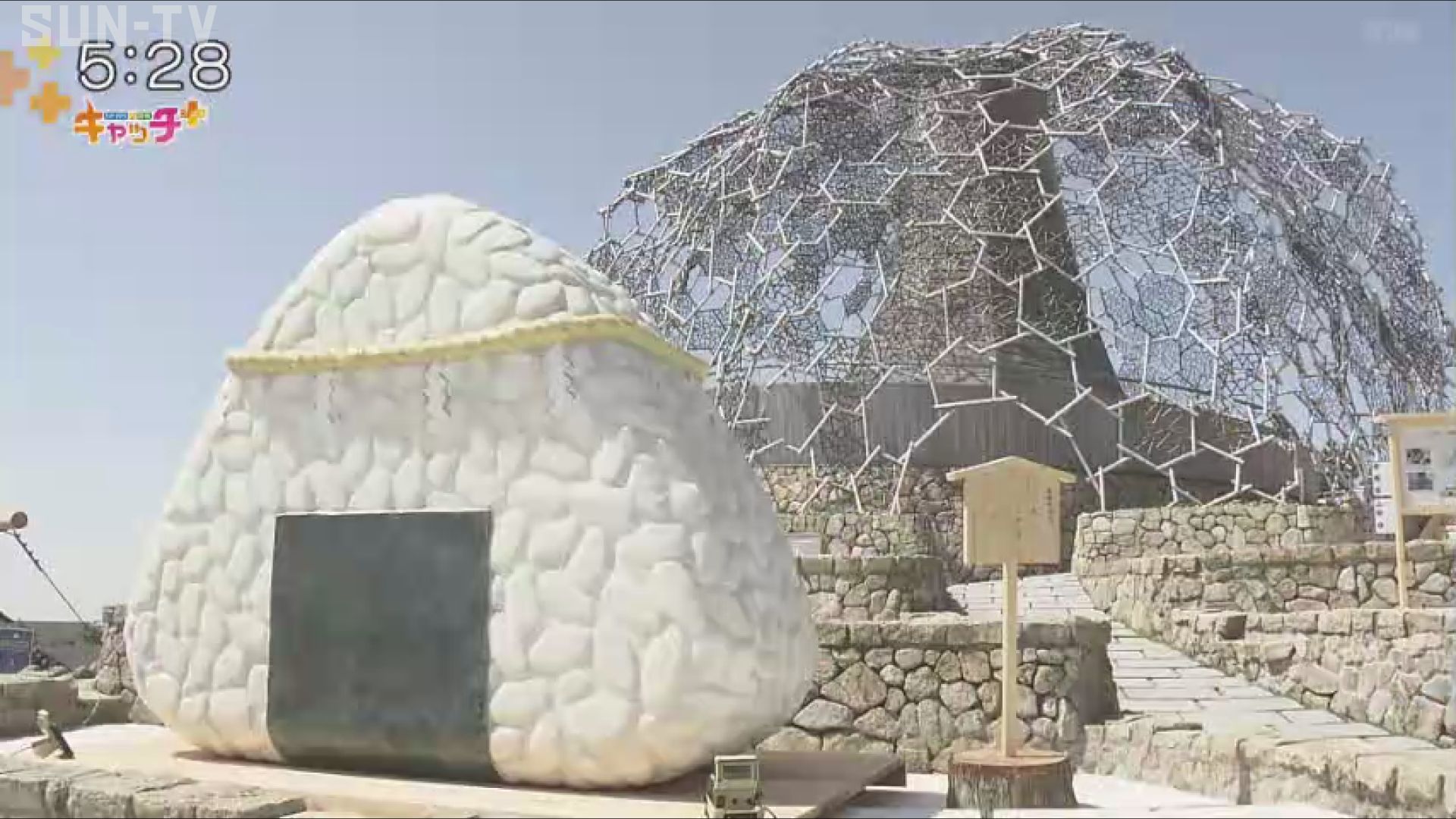 山の上にある大きなおむすび。おむすびと縁結びが掛けられていて、お参りしたり木製の小さなおむすびを握ることで良いご縁に恵まれるとされています。