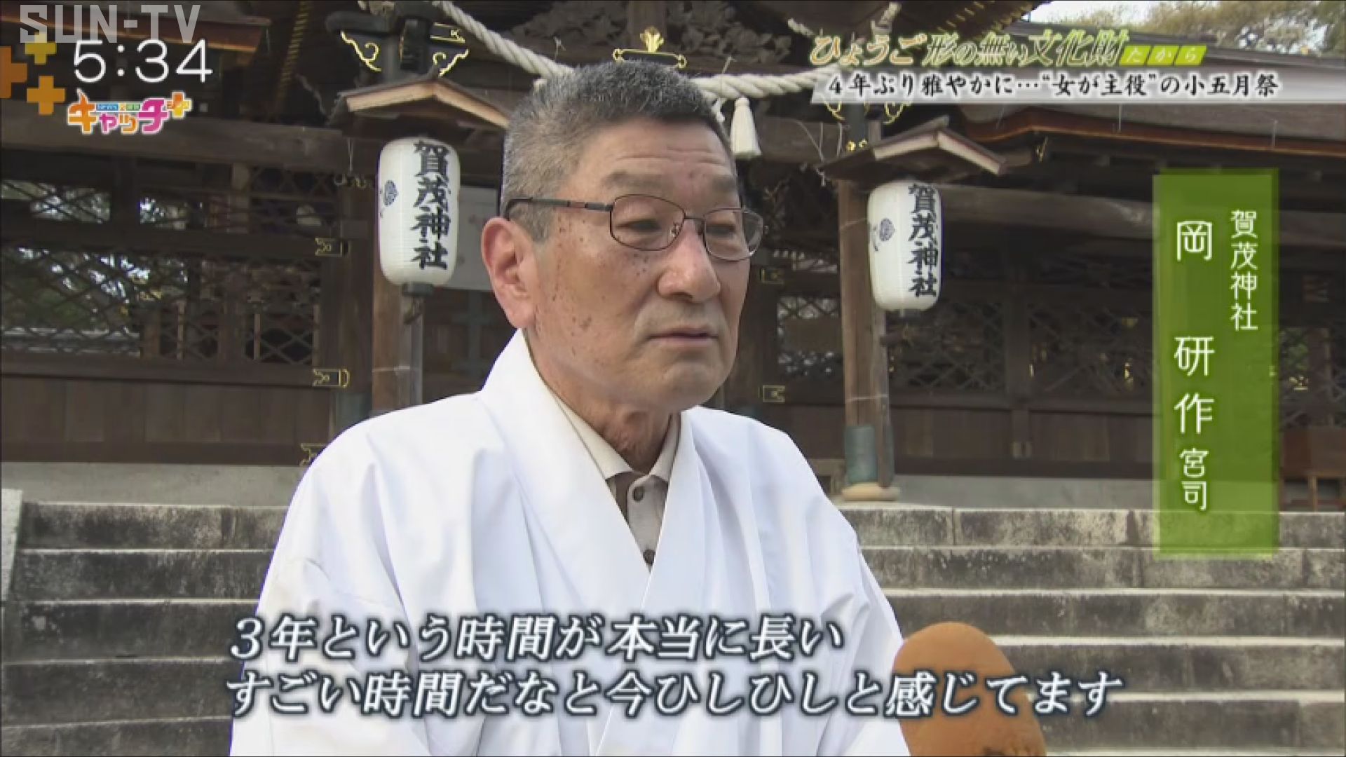 賀茂神社の岡研作宮司は祭の再開を喜ぶ一方、今後の存続に危機感を抱いていました。
