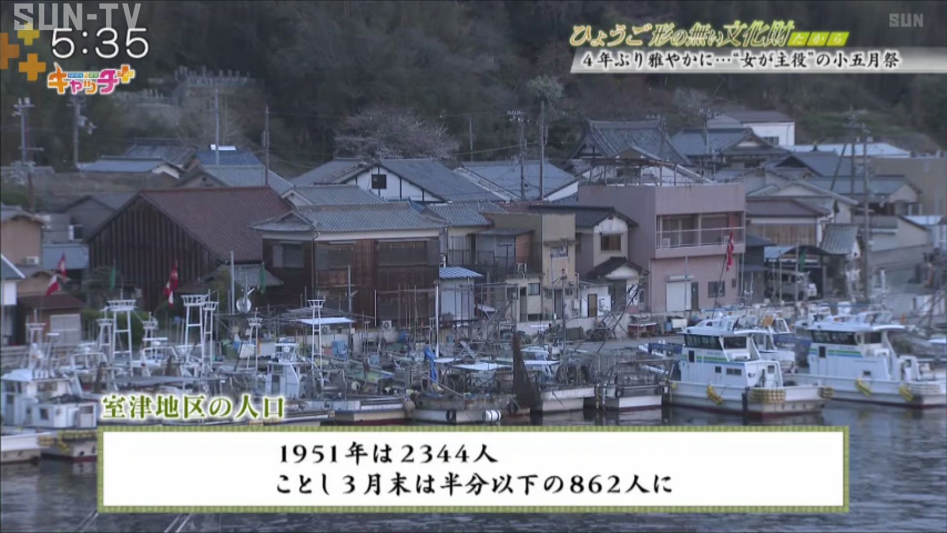 室津地区の人口減少は深刻で、1951年に2300人を超えていた人口が、今年3月末には半分以下の862人に減っています。地元の室津小学校も2年前に閉校となりました。
