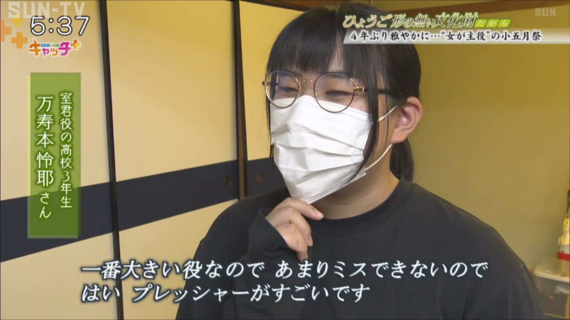 祭の主役である室君を演じるのは、高校3年生の万寿本怜耶さんです。
