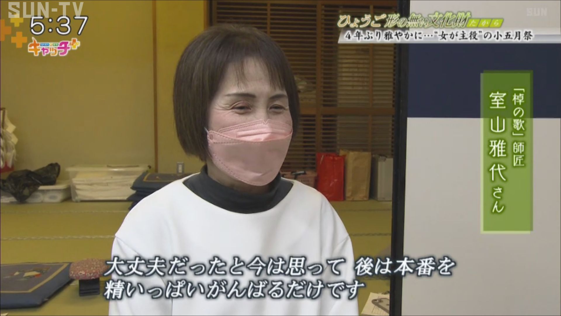 「私は以前、こうやって(棹の歌を)教えていた者です。長いことなかったので寂しかったけどうれしいです。子どもたちの着物を着せるのを手伝ったんですけど、とてもうれしくて」