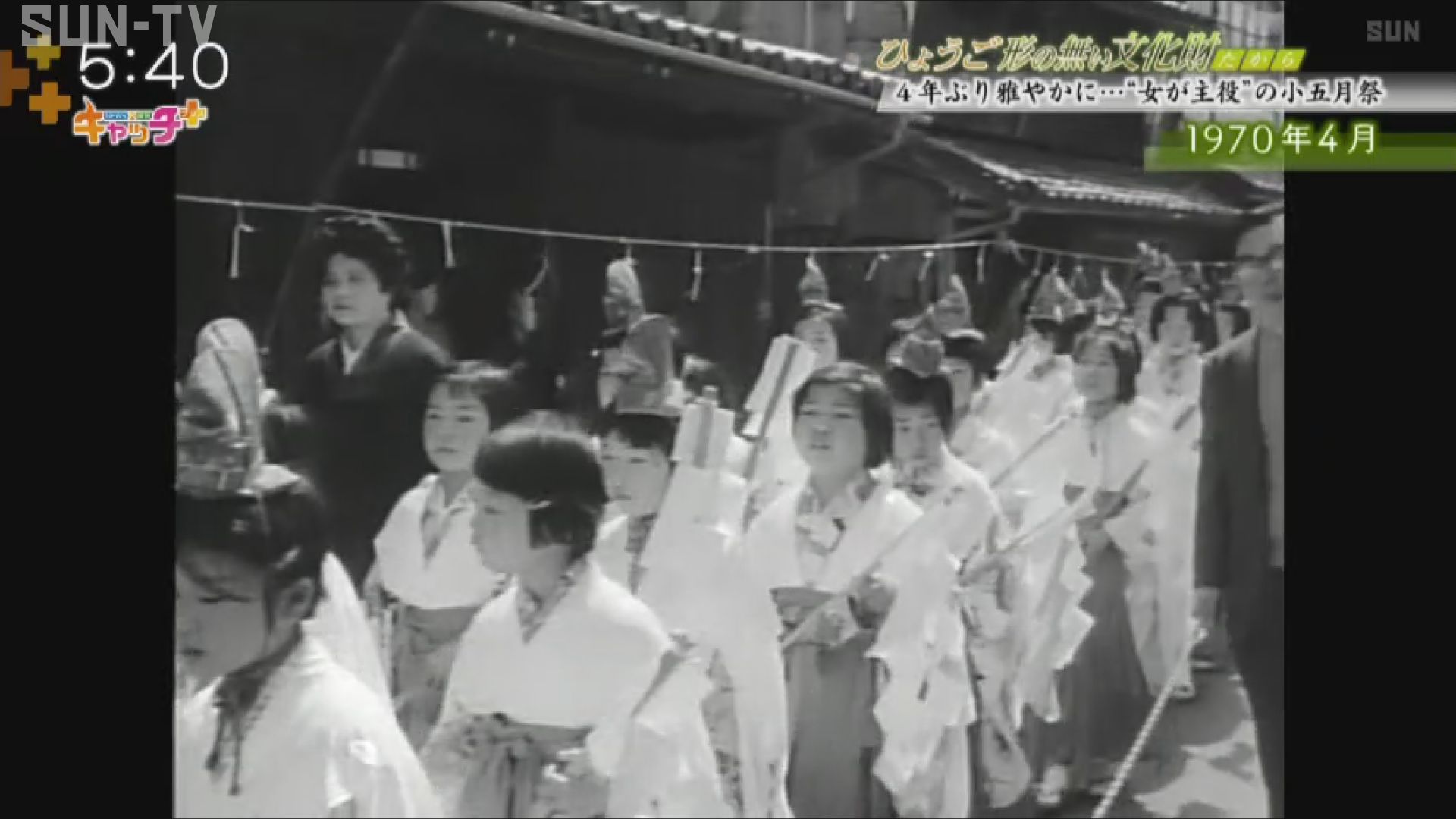 これは1970年の小五月祭の風景です。まだ人口が多かったので、たくさんの女の子が「みこし渡御」に参加し、盛り上がっていました。