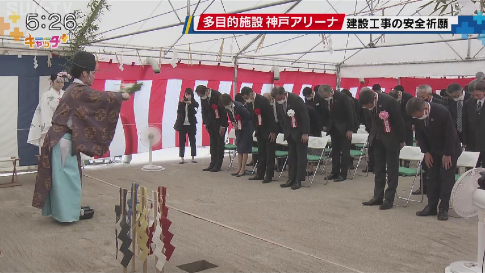 今月15日に着工した「神戸アリーナ」の建設予定地では、関係者らが参加して工事中の安全を祈願する神事が執り行われました。