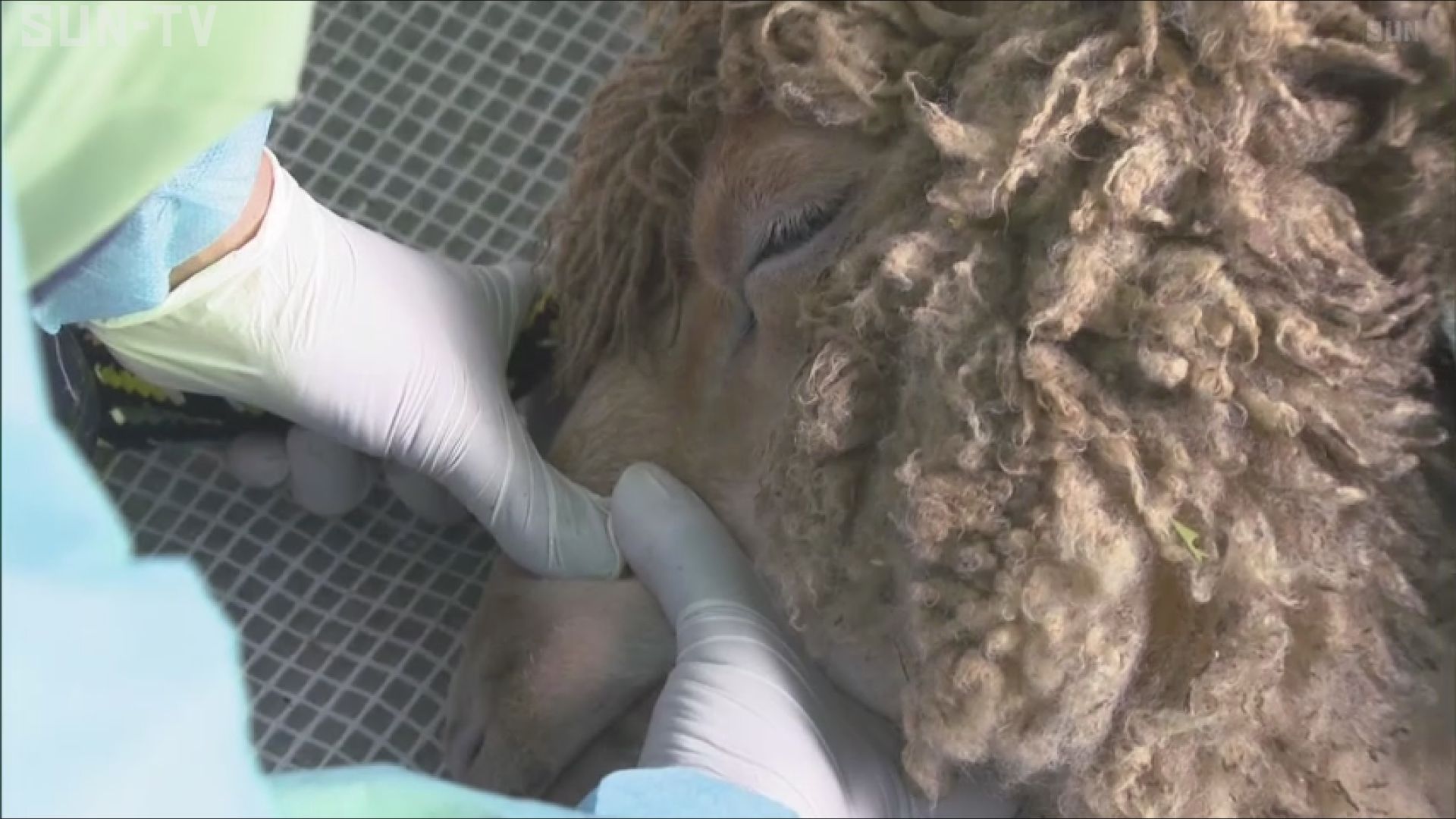 ヒツジは体温調節のために夏前に毛刈りが必要で、園児たちが見守る中、7歳の雌「フユ」は飼育員の手でおよそ3キロ分もの毛を刈り取られ、涼しげな姿に衣替えしました。