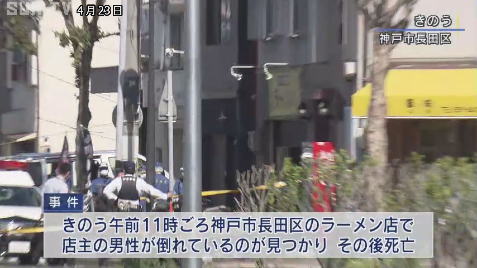この事件は4月22日午前11時ごろ、神戸市長田区のラーメン店で、店主の男性が血を流して倒れているのが見つかり、その後死亡したもので、警察は男性の頭に銃弾のようなものが残っていたことなどから、殺人事件として捜査しています。
