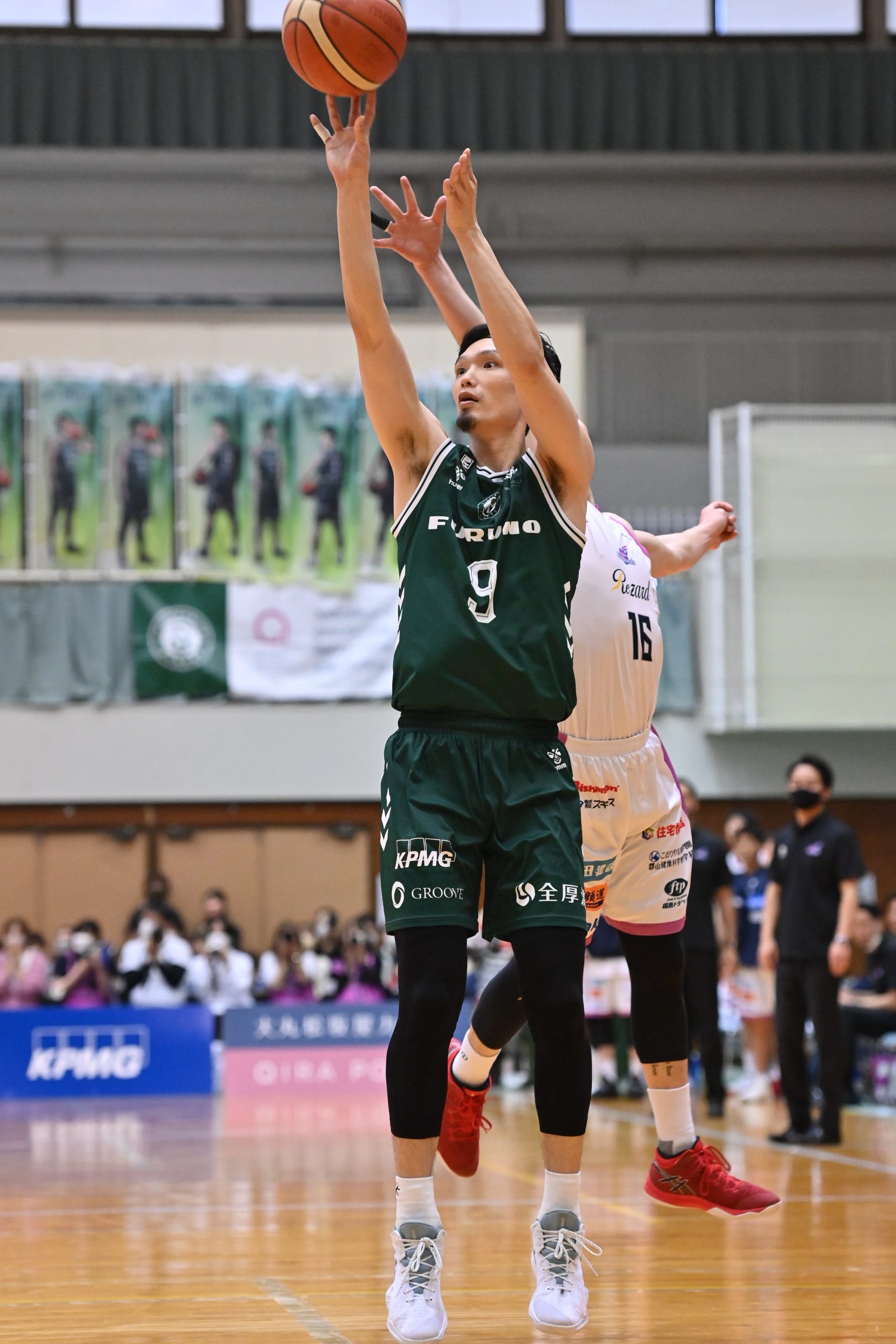 残り20秒で道原-松崎-谷とパスが渡り、谷が西宮最後の得点を3ポイントシュートで決めた。