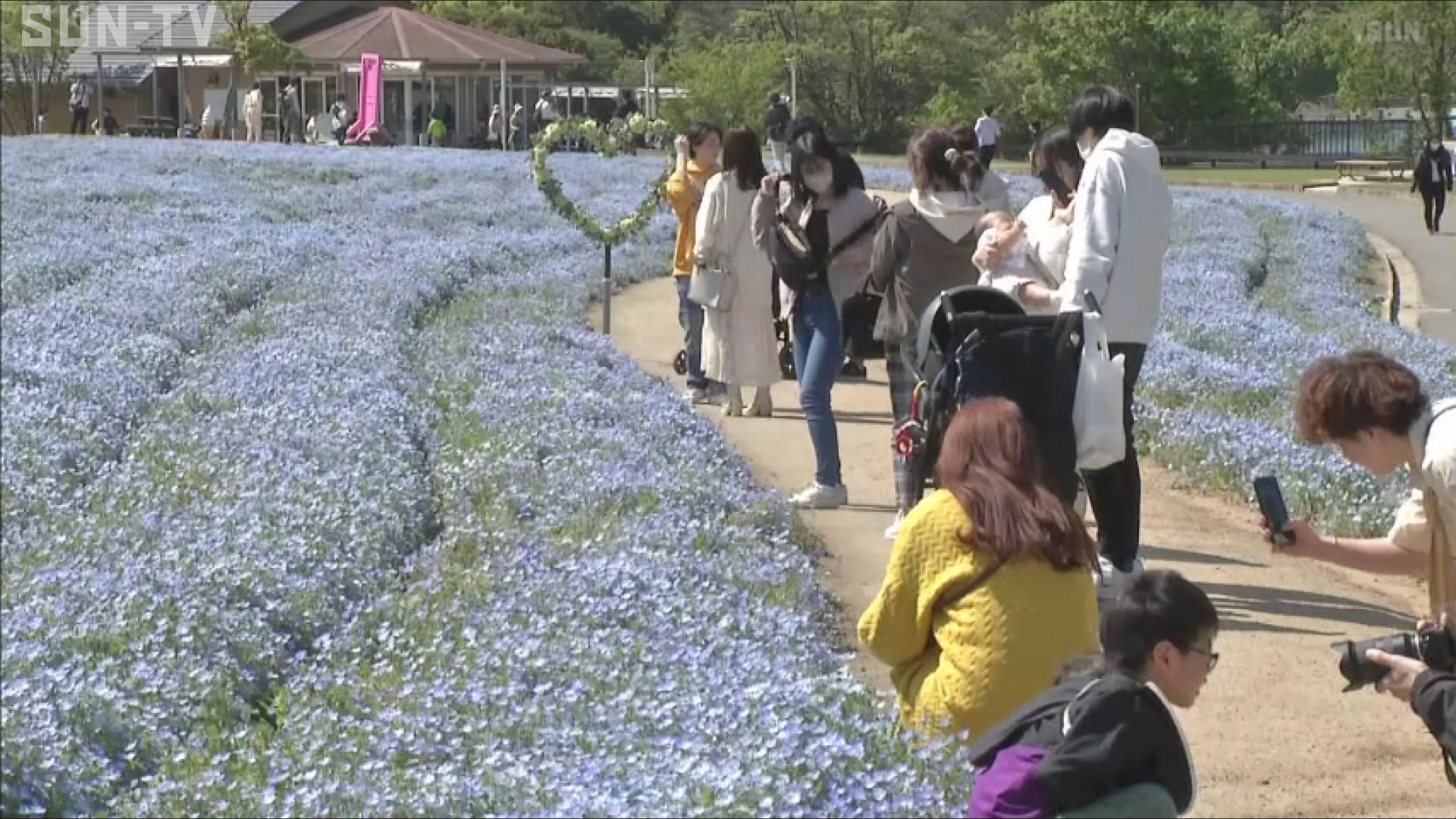 南あわじ市の「淡路ファームパーク・イングランドの丘」では、青いネモフィラの花が見頃を迎えています。