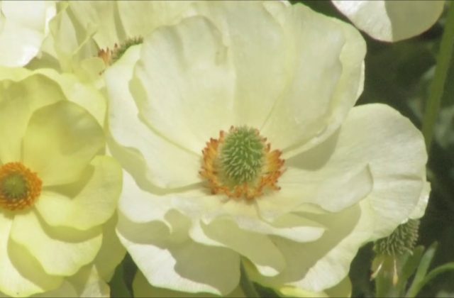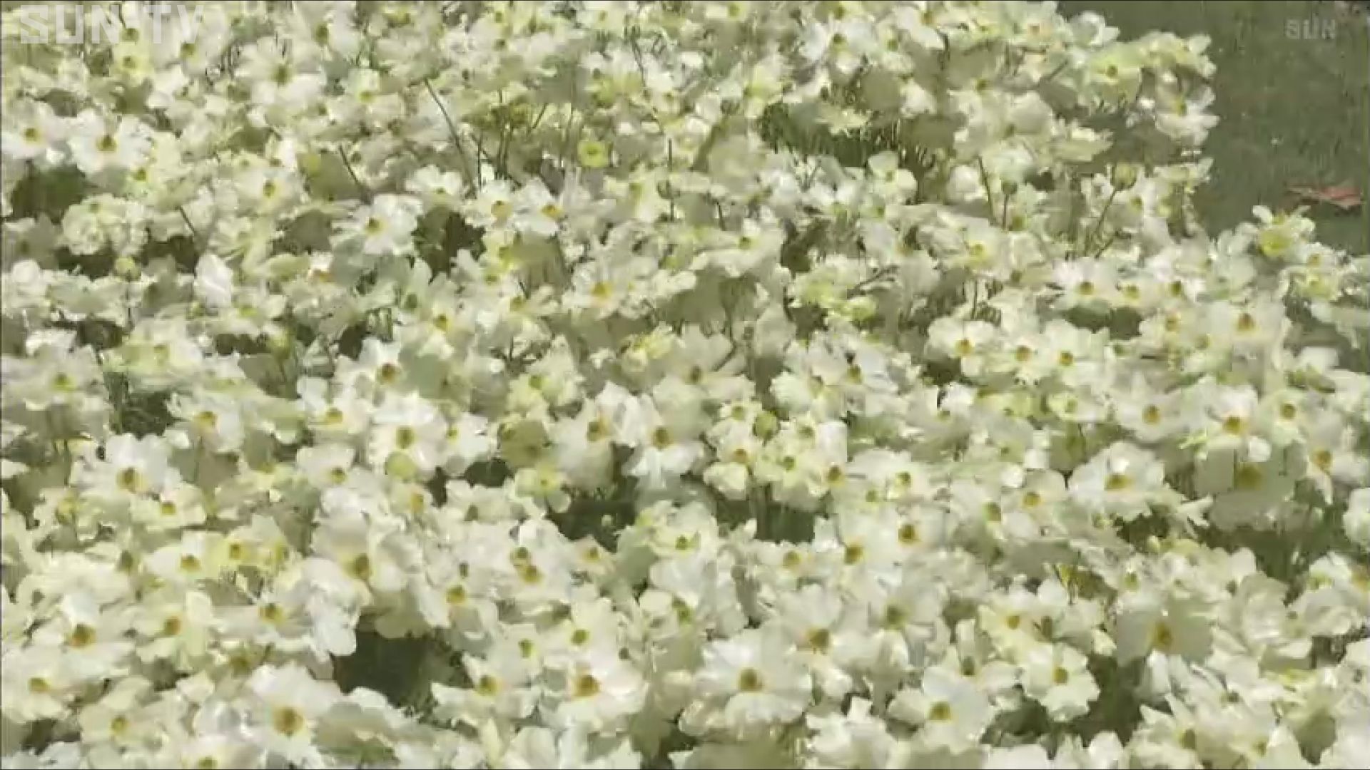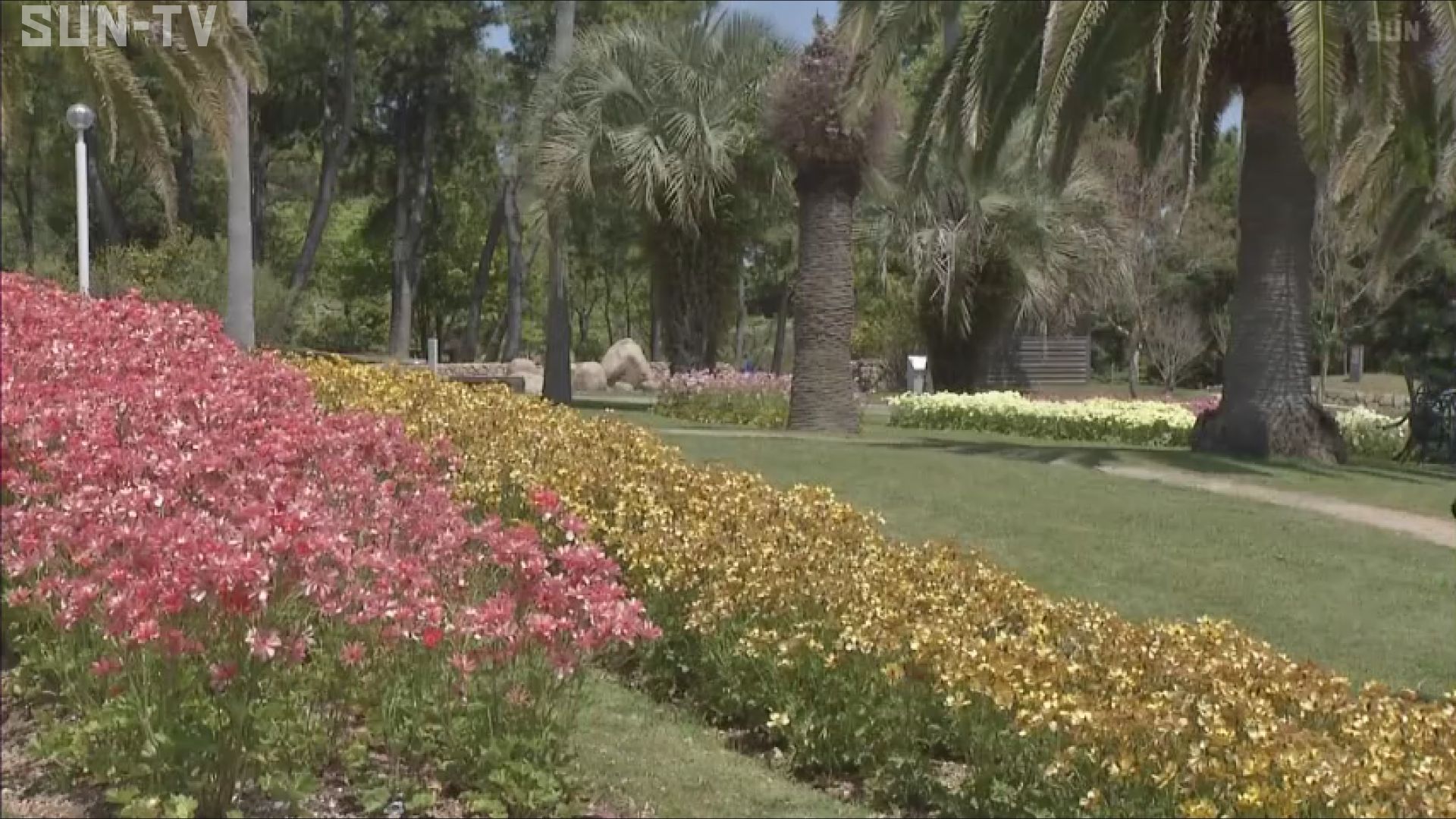 淡路市の国営公園では、光沢のある花弁が特徴の「ラナンキュラス・ラックス」が見ごろを迎えています。
