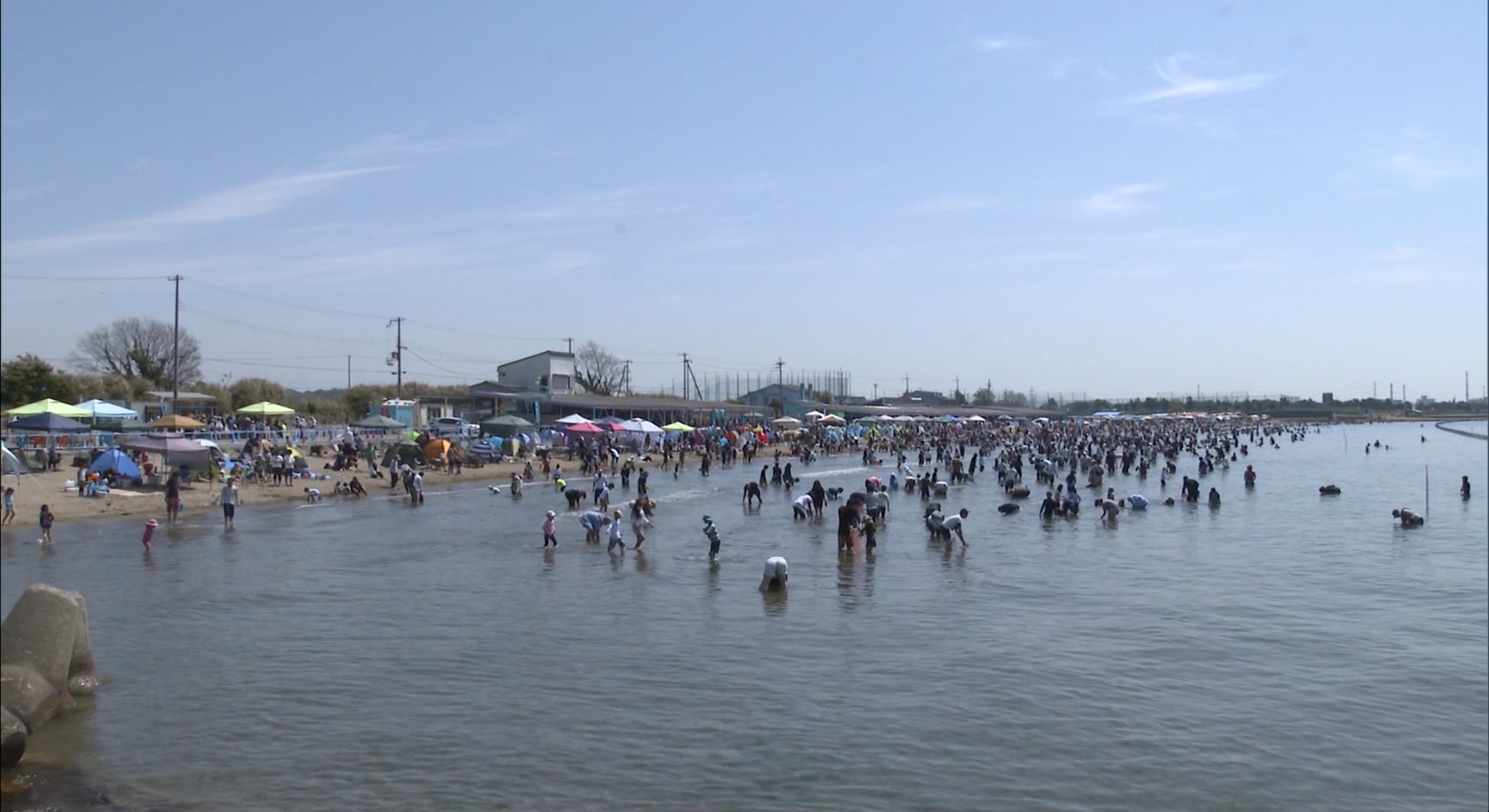 ゴールデンウイークも後半を迎え、兵庫県姫路市の的形海水浴場では、潮干狩りを楽しむ多くの親子連れでにぎわっています。