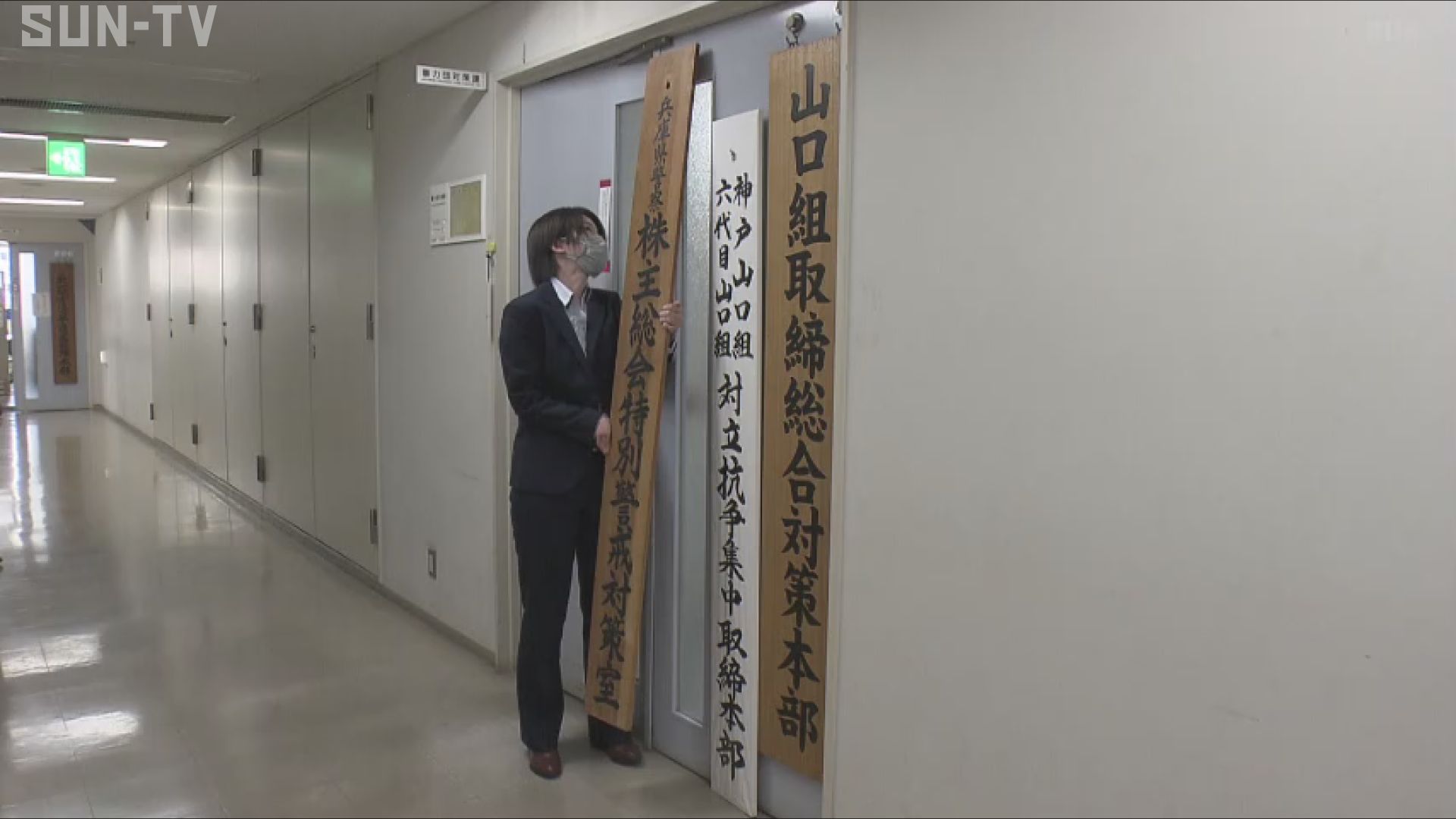 午前10時、兵庫県警本部の暴力団対策課の出入り口に、株主総会特別警戒対策室の看板が掲げられました。