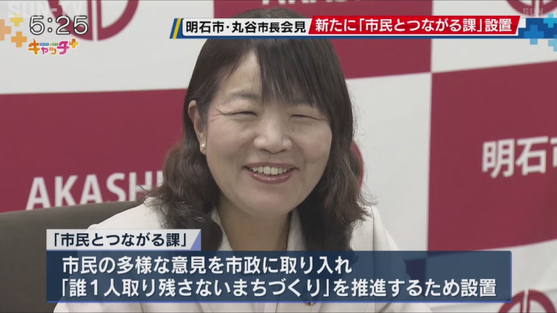 5月1日に就任した明石市の丸谷聡子市長は5月15日、市民の多様な意見を市政に取り入れるための新たな専門部署を設置したと発表しました。