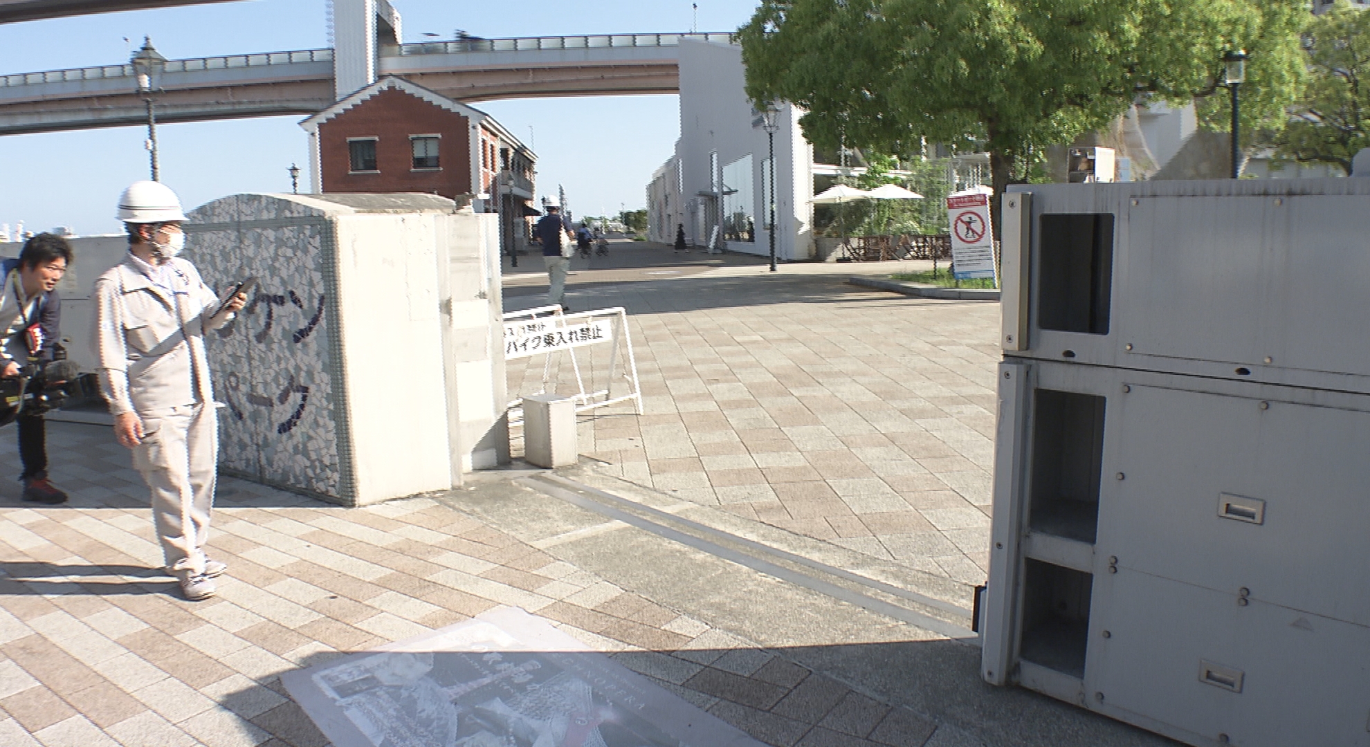 台風シーズンを前に、兵庫県神戸市は高潮などから街を守る防潮扉の閉鎖訓練を行いました。