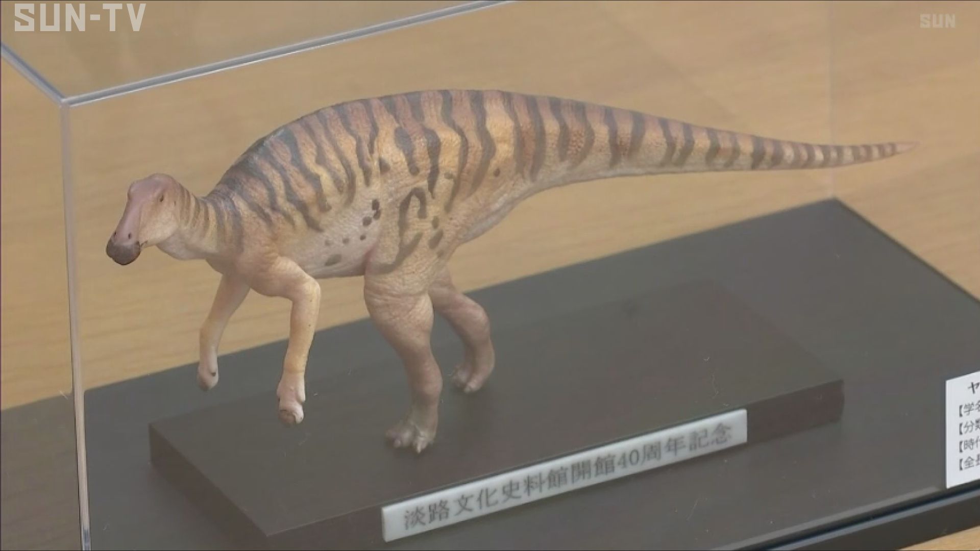 2004年に洲本市で化石が見つかった新属新種の恐竜「ヤマトサウルス・イザナギイ」の復元フィギュアが完成し、5月18日 市内の小学校で贈呈式が行われました。
