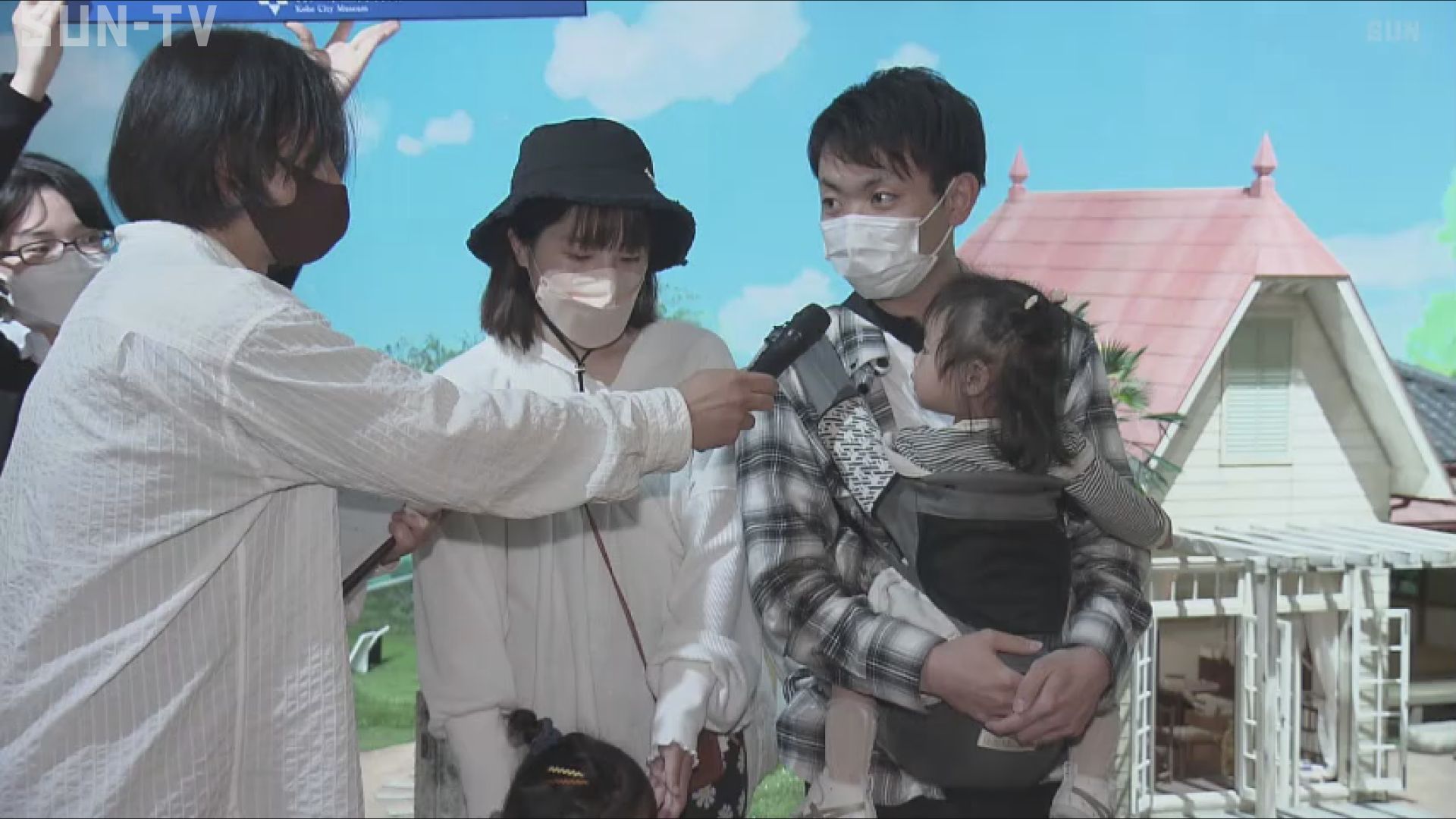 神戸市立博物館で開催中の特別展「ジブリパークとジブリ展」の入場者数が19日10万人に到達し、記念のセレモニーが開かれました。