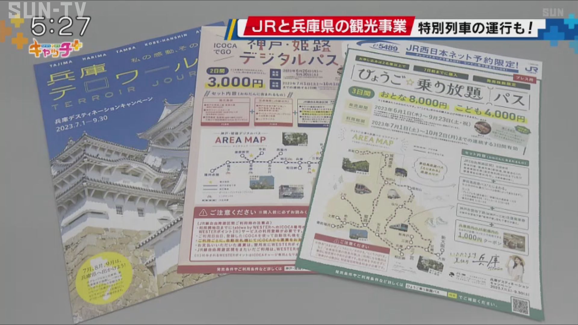 さらに、兵庫県内のJR線の特急や普通列車が3日間乗り放題のパスも来月1日から発売されます。 14年ぶり2回目となる兵庫デスティネーションキャンペーンでは、7月1日からの3カ月間で県内の宿泊客436万人を目指しています。
