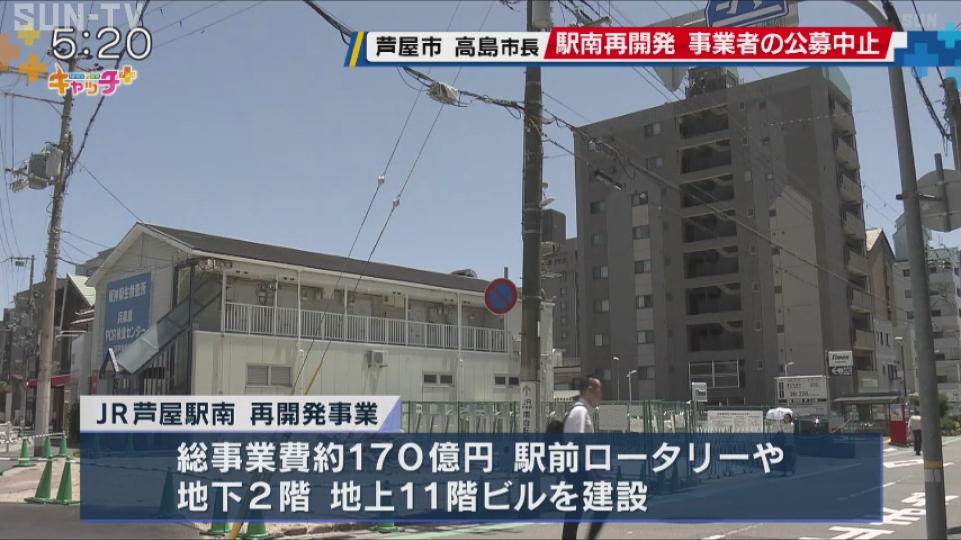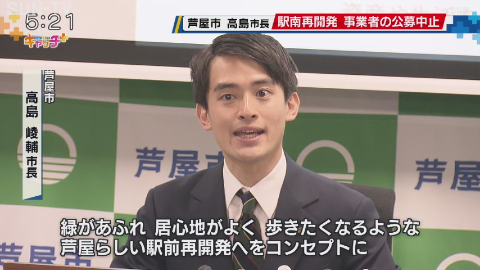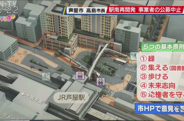 JR芦屋駅南地区の再開発事業は総事業費170億円。 駅前ロータリーなどを整備する他、地下2階地上11階のビルを建設し、商業施設や公益施設、さらに集合住宅を整備する計画で、高島市長は見直しを公約に掲げていました。