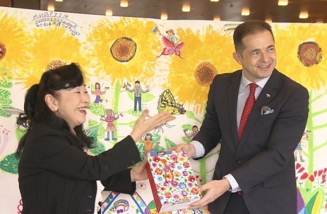 義援金はナザレ高校を通じてウクライナの子どもたちのために使われ、絵画はナザレ高校に展示されるということです。