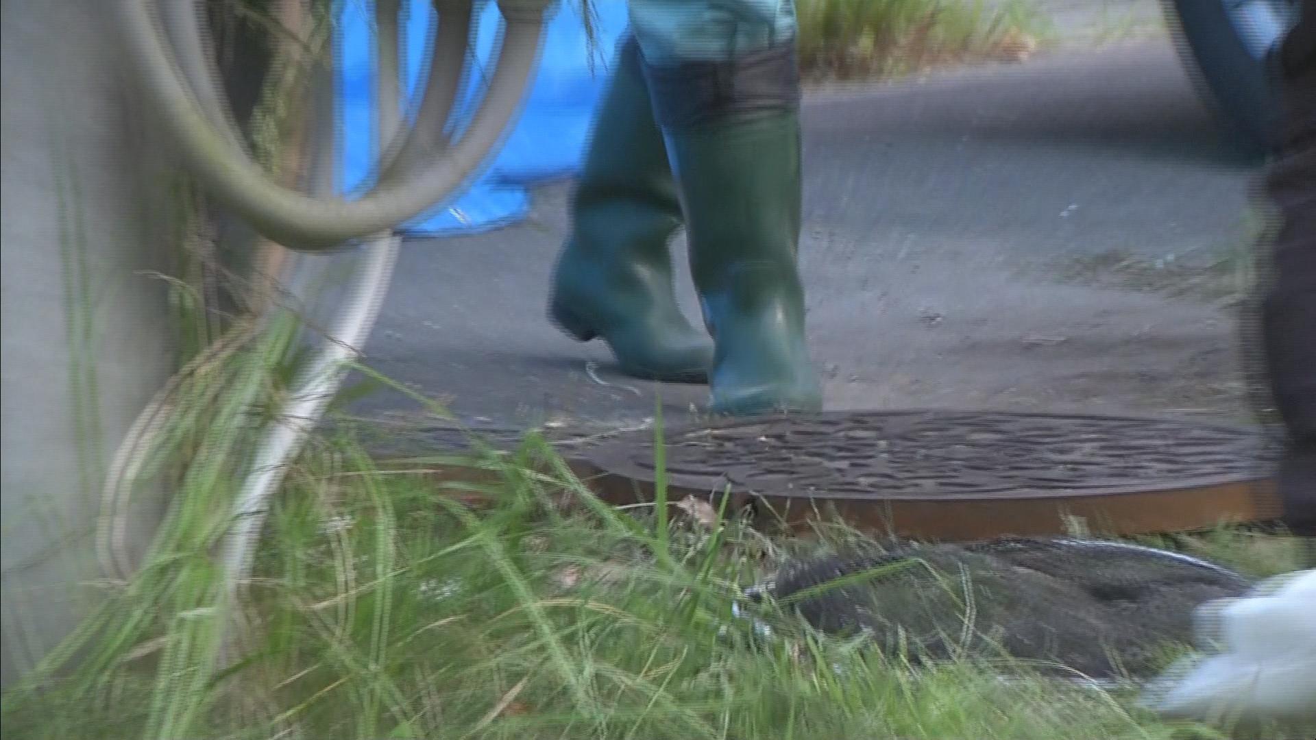 遺体が見つかった現場にあるマンホールを開けるには専用の工具が必要だということで、遺体は付近の集落から下水道を通って流れてきたとみられています。