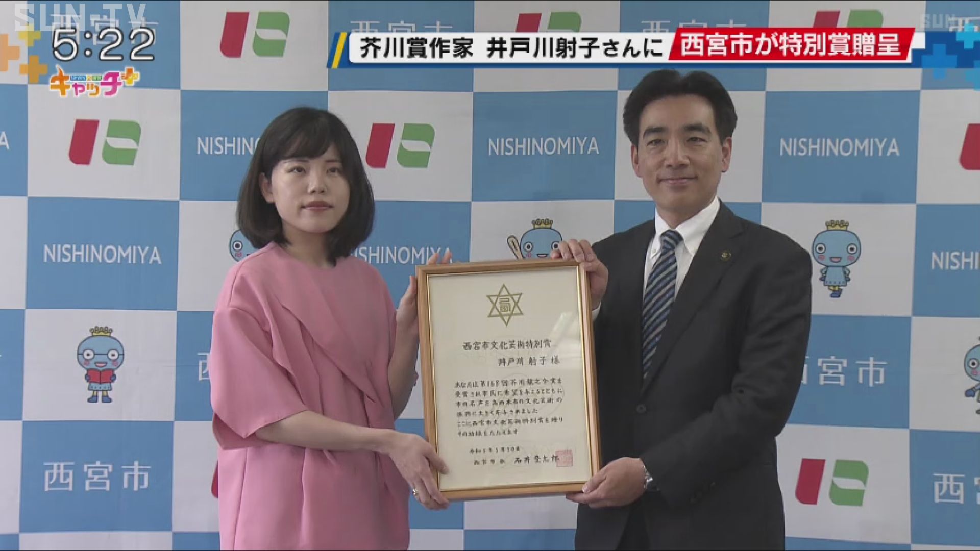ことし1月に芥川賞に選ばれた西宮市在住の作家、井戸川射子さんに西宮市文化芸術特別賞が贈られました。