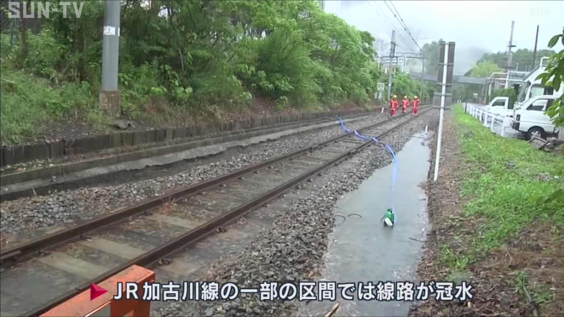 JR加古川線の一部の区間では、線路が冠水し、朝から駅員らが対応に追われています。