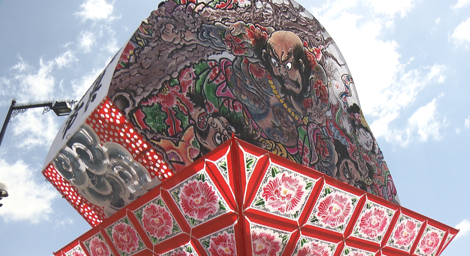 2023年8月に青森県弘前市で始まる「ねぷたまつり」を紹介しようと、神戸で観光イベントが開かれ、祭りで使われる大型の山車が展示されています。