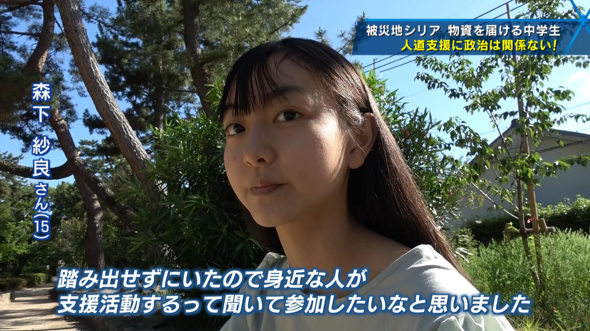 西宮市に住む中学3年生の森下紗良さん(15)。友人たちとともにシリアの被災地支援のボランティアに取り組んでいます。