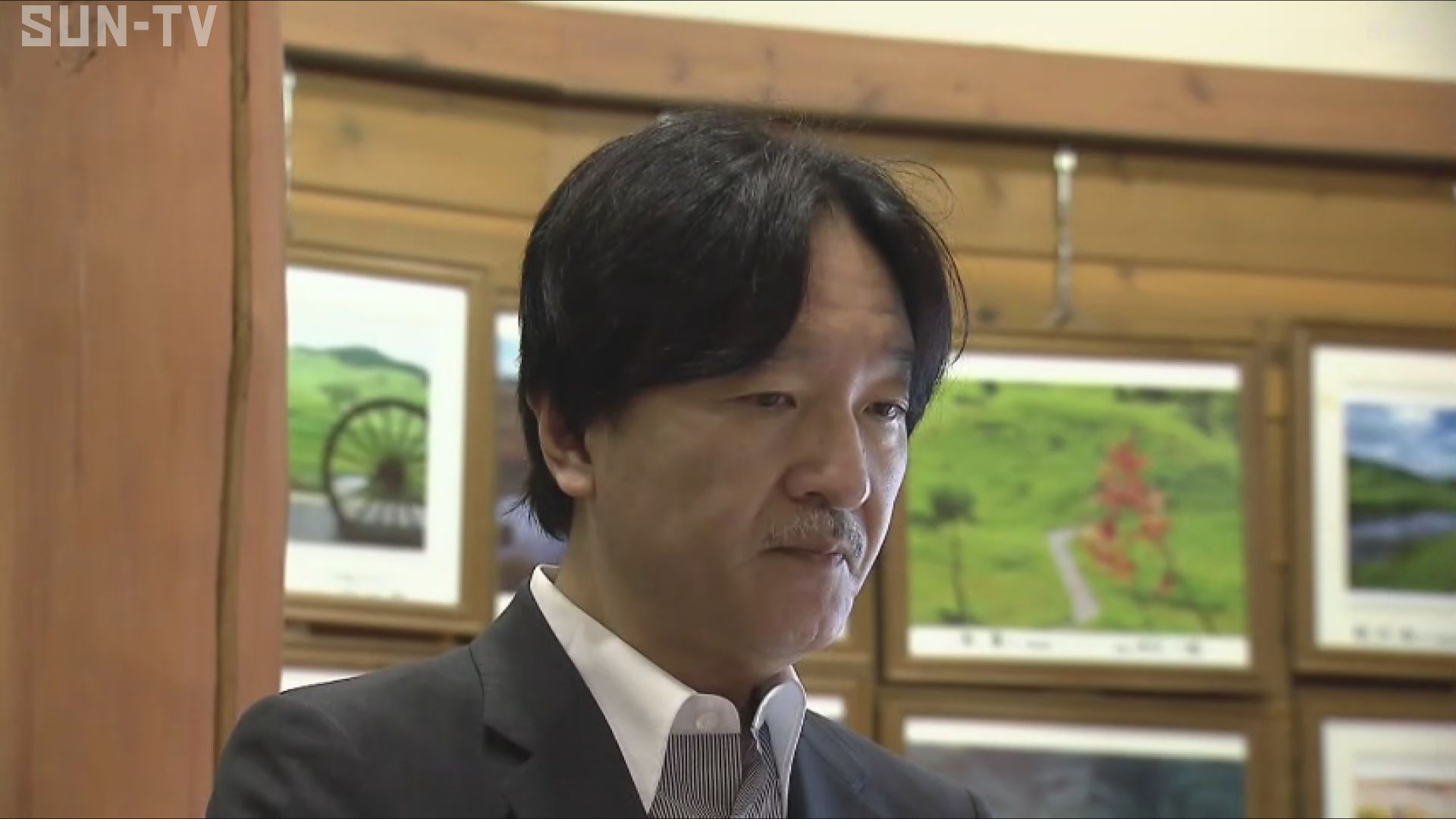 草原の地形の特徴や土地利用の歴史などについて説明を受けられた後には、「とのみね自然交流館」を訪れ、山焼きの写真パネルなどもご覧になりました。