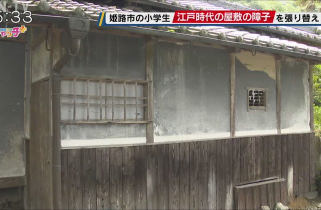 兵庫県姫路市の指定文化財「佐野邸」の障子の紙を張り替えるため、市内の小学生たちが紙すきに挑戦しました。