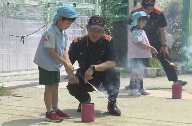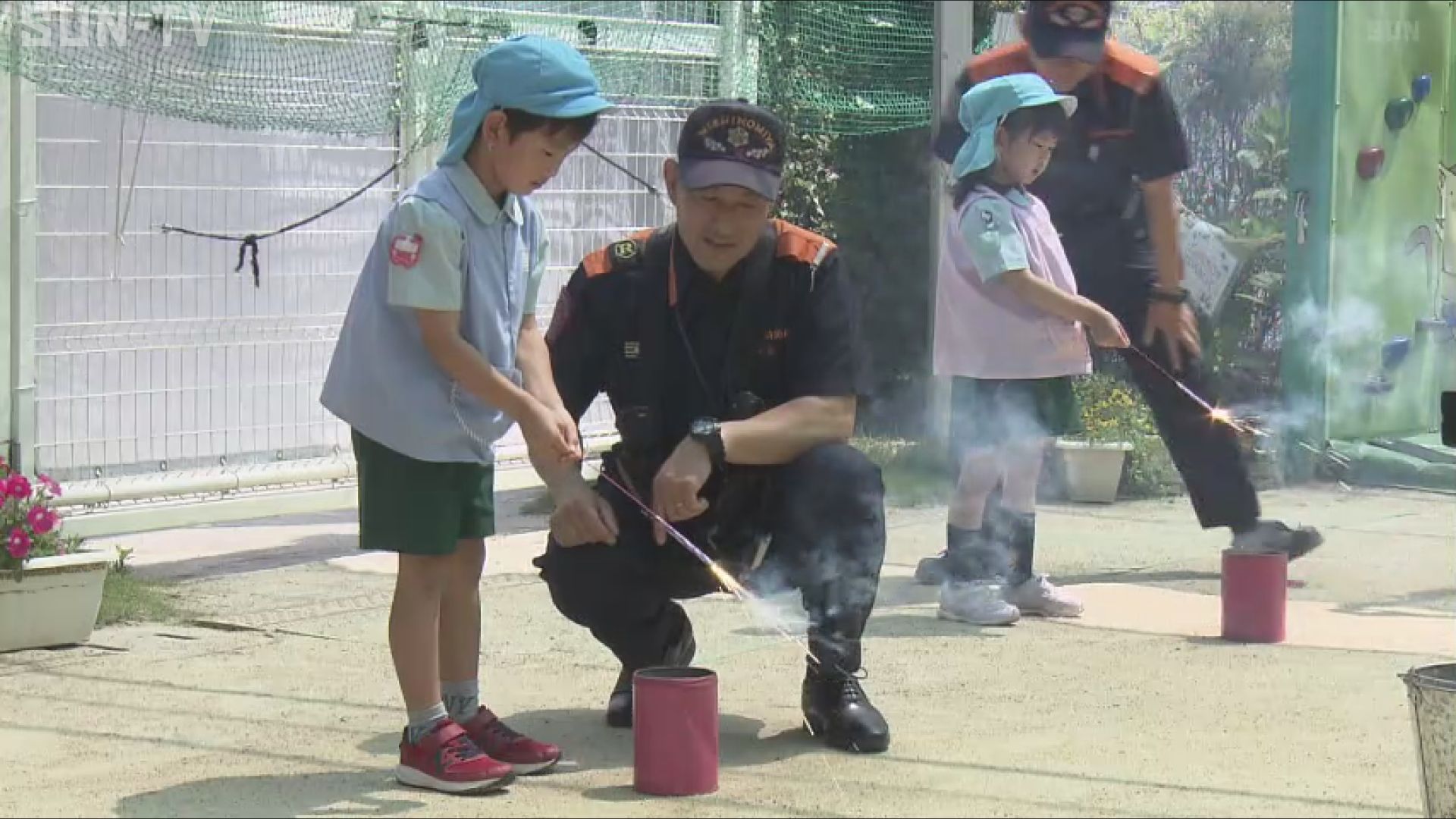 安全な花火の遊び方を知ってもらおうと、19日、西宮市の幼稚園で特別教室が開かれました。