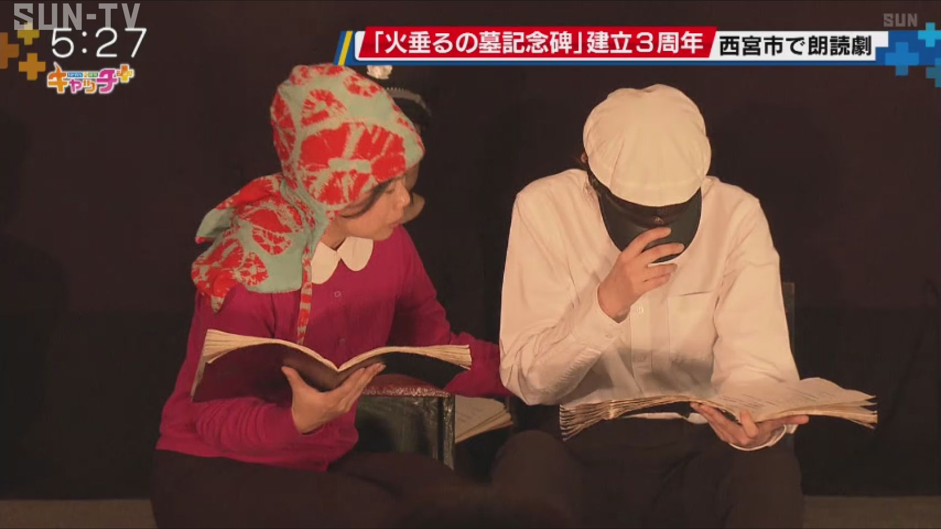 18日、西宮市内の公民館では記念碑の建立3周年を記念して「火垂るの墓」の朗読劇が披露されました。
