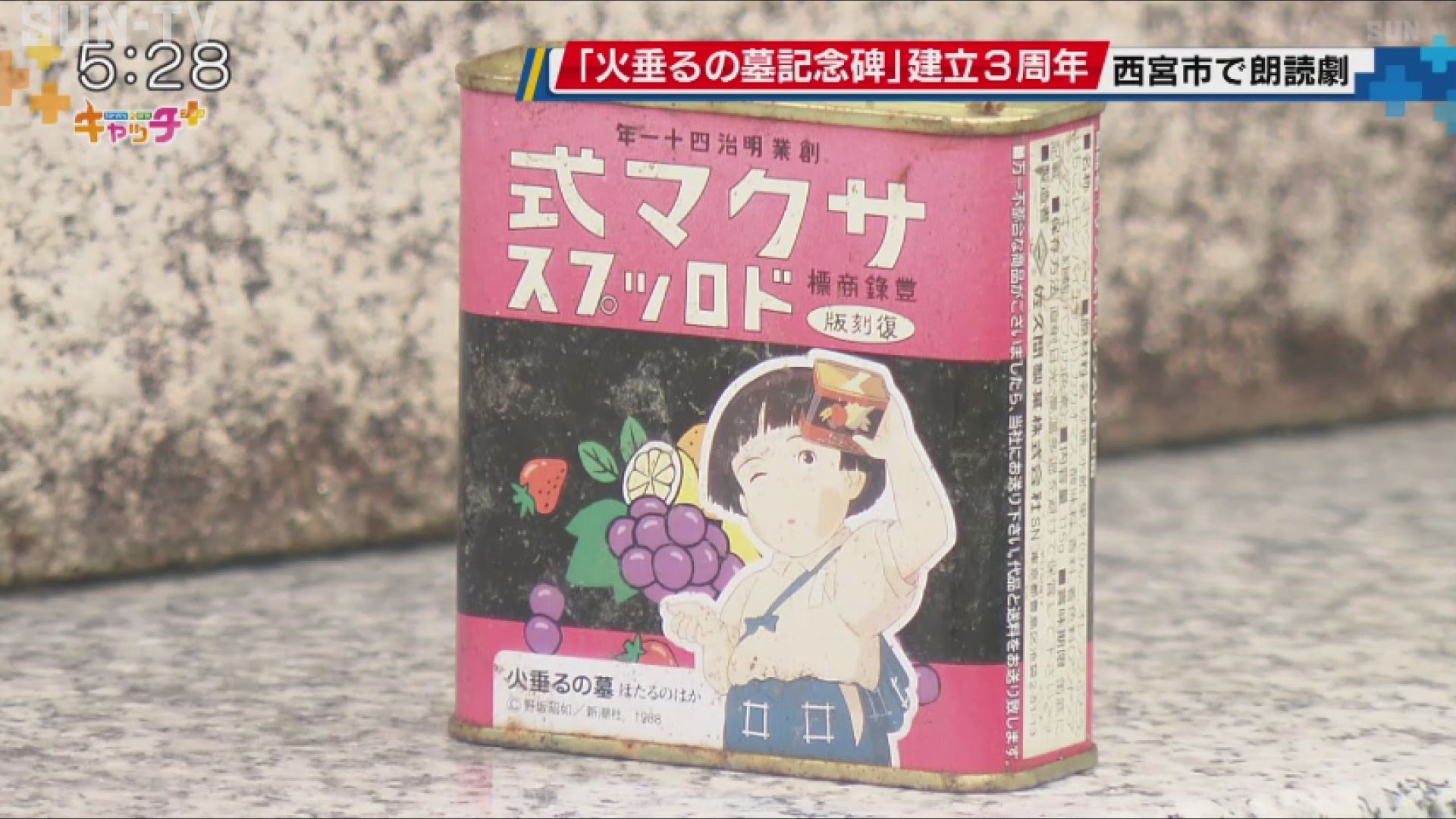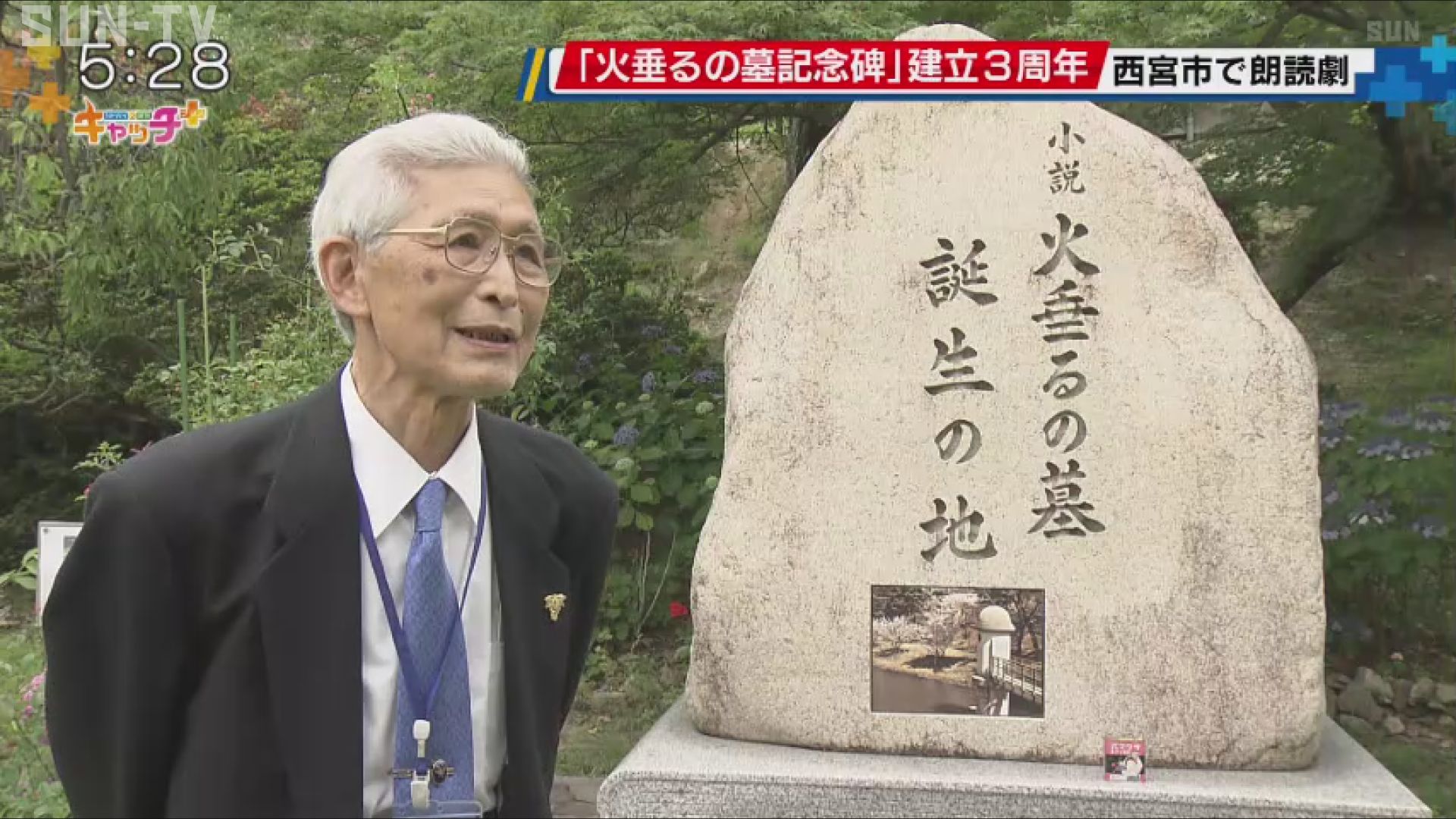 西宮市で18日、「火垂るの墓記念碑」建立3周年を記念する朗読劇が上演され、集まった人が戦争で犠牲となった人を偲びました。