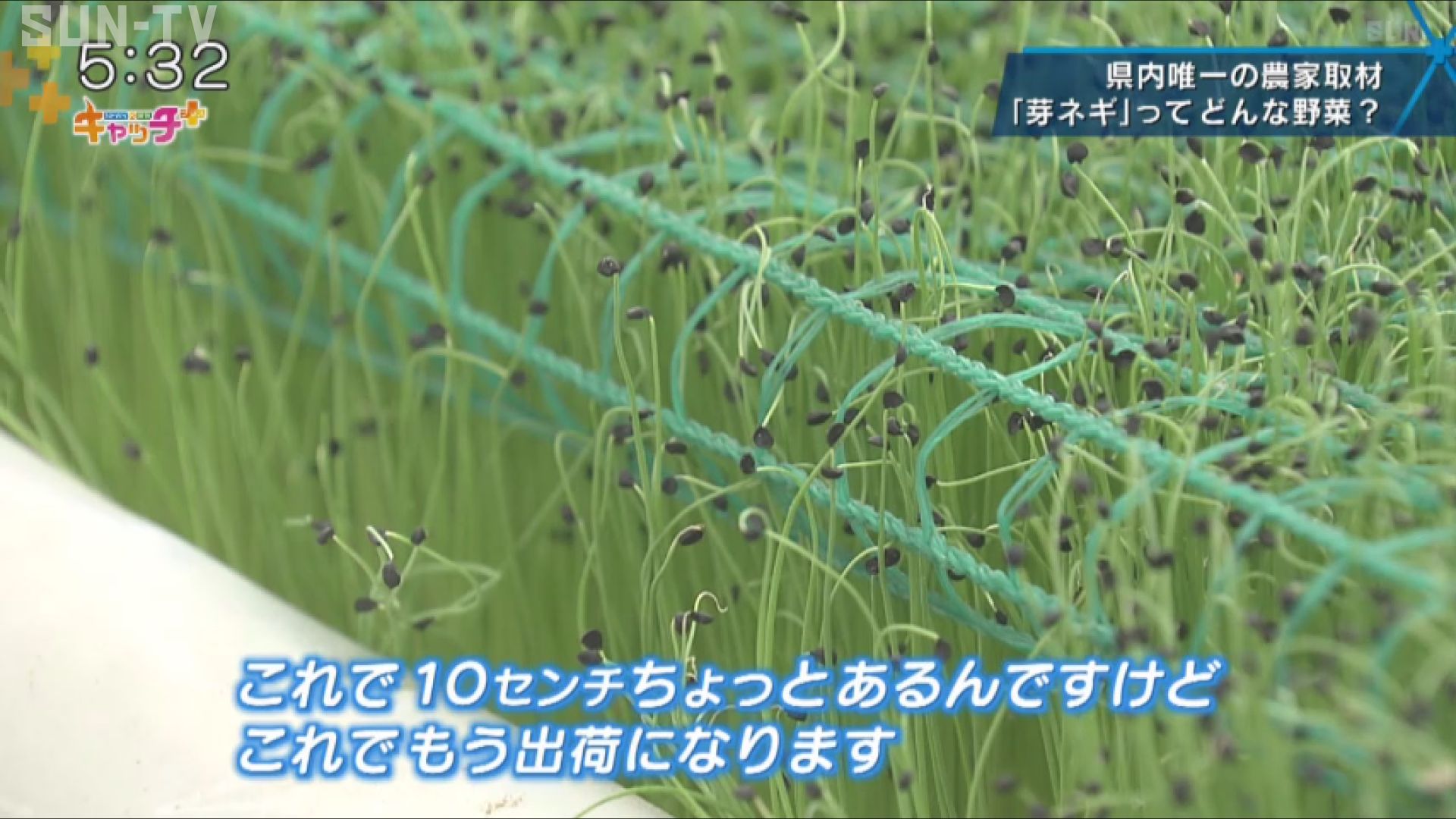 一年を通して栽培される芽ネギ。夏は刺身やサラダ、冬はフグ鍋など、季節ごとの食材で楽しめます。