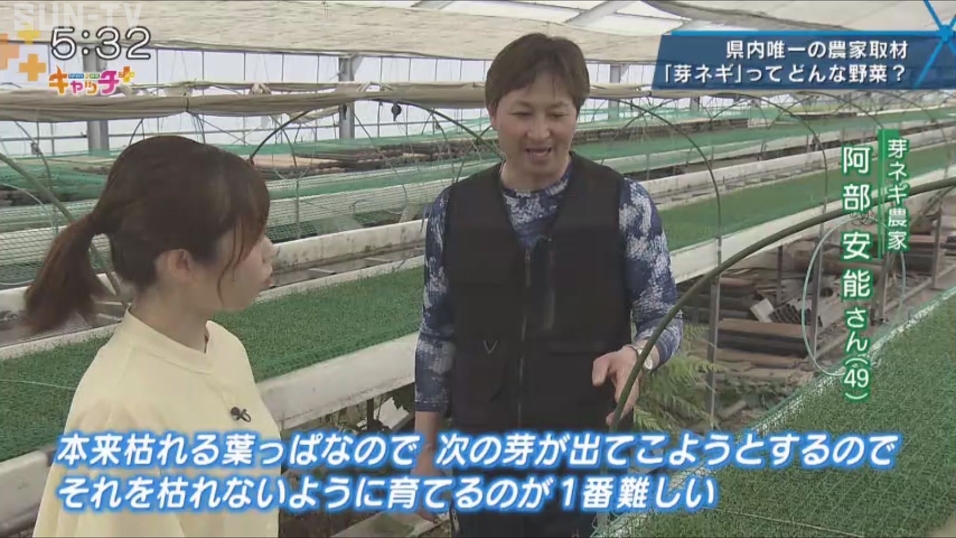 阿部安能さん(49)。県内唯一の芽ネギ農家で、芽ネギを生産して30年になります。早速、農業用ハウスの中を見せてもらうと…。