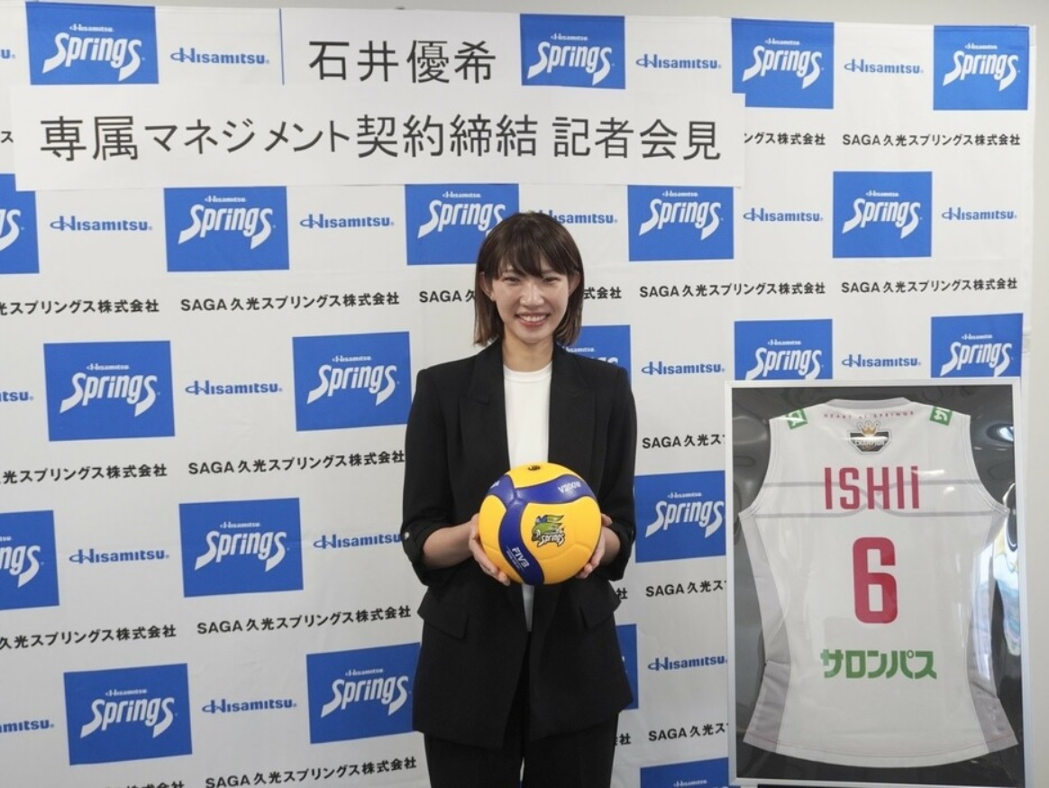 2022-23シーズンで現役を引退した女子バレーボール元日本代表の石井優希(V1久光スプリングス 32歳)が6月20日、佐賀県鳥栖市で記者会見し、久光と専属マネジメント契約を結び、今後バレーボールの普及活動などを行うことを明らかにした。