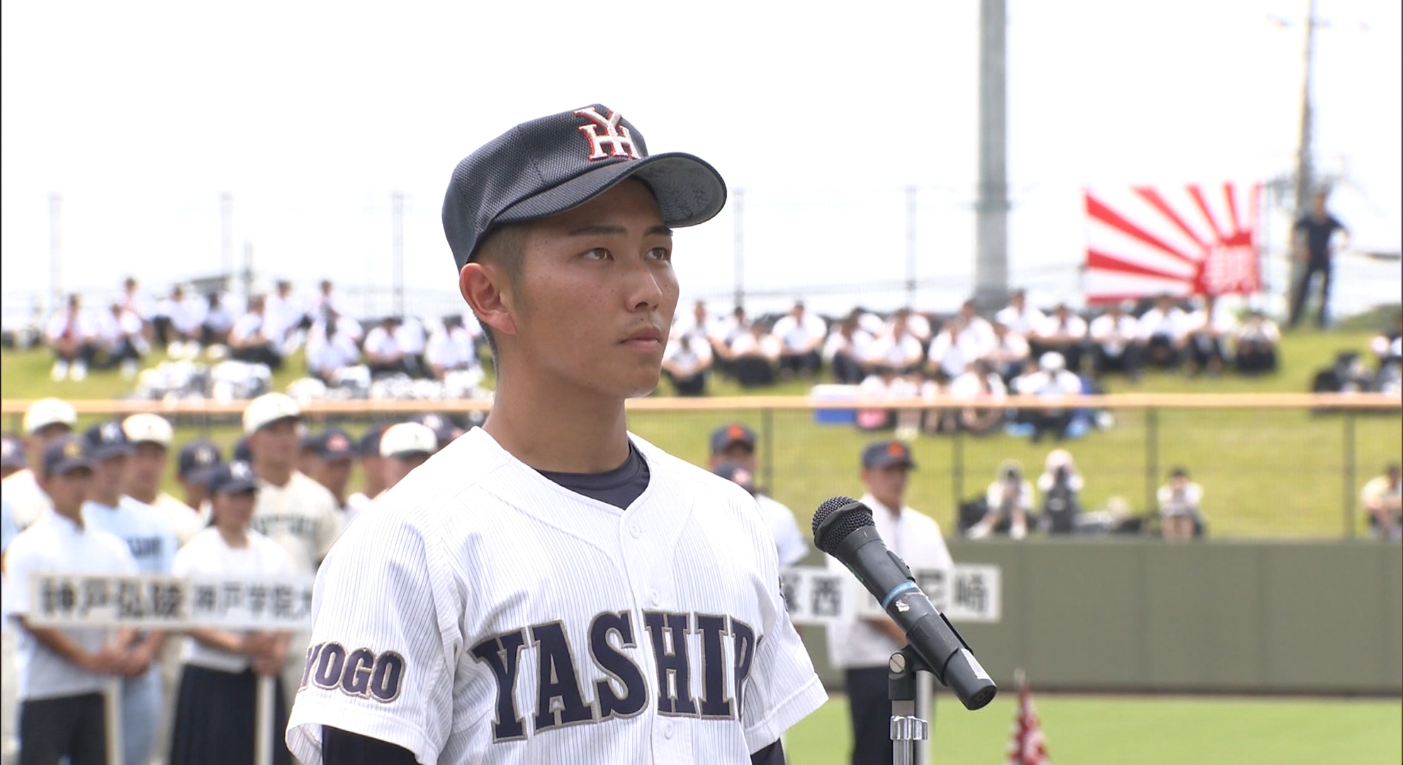 隈主将(社)「今から経験する全ての時間と風景が、かけがえのない生涯の財産となるよう、支えてくれる家族、日々ご指導して下さる先生方、大会運営と、応援して下さる全ての方々の想いを胸に、感謝の気持ちを言葉と行動に変え、兵庫を全国で一番熱い夏にすることを誓います。」
