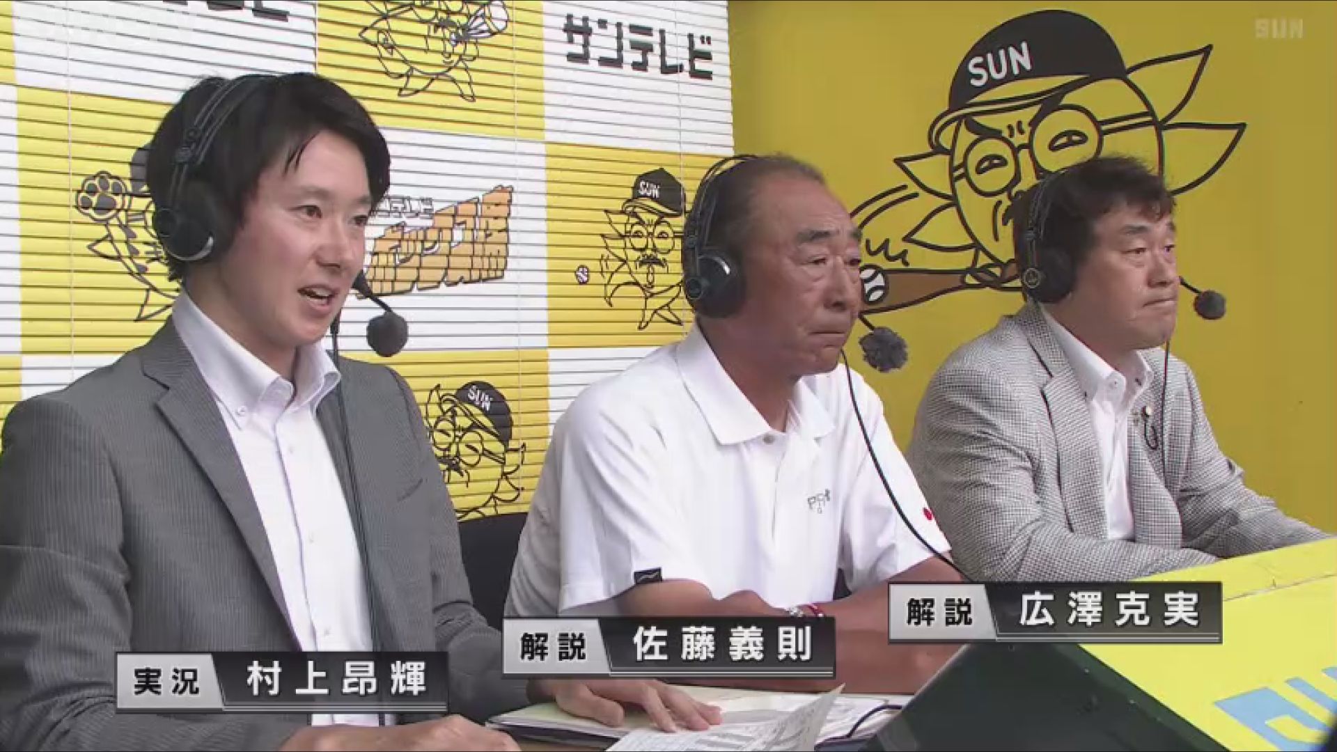 サンテレビ ボックス席の解説は、阪急-オリックスで通算165勝、阪神など5球団でコーチを務め、井川慶・ダルビッシュ有・田中将大らを育てた佐藤義則氏と、広澤克実氏が務めた。