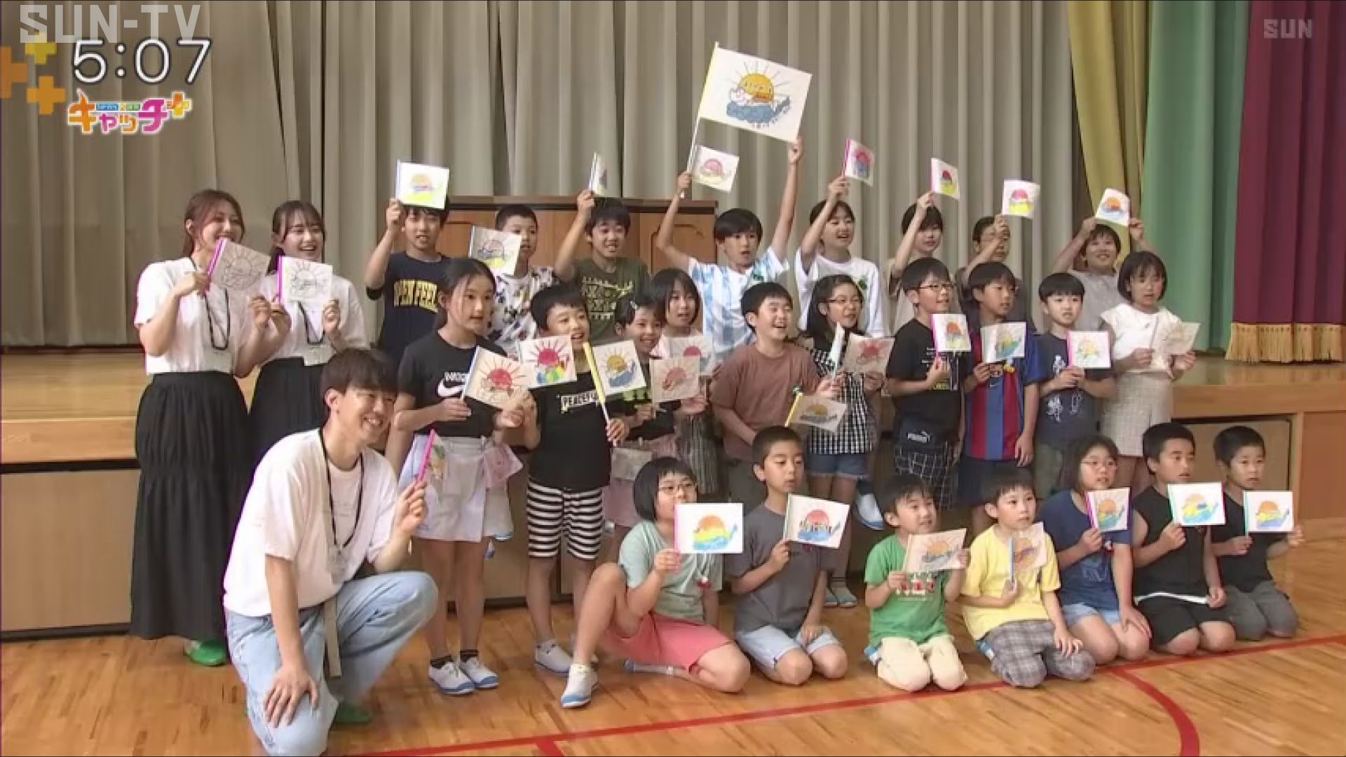 また、大学生が考案したキャラクター「はたがみさま」のぬり絵を加工して、一緒に旗を作りました。